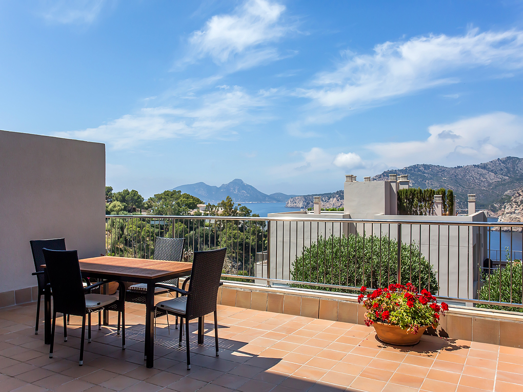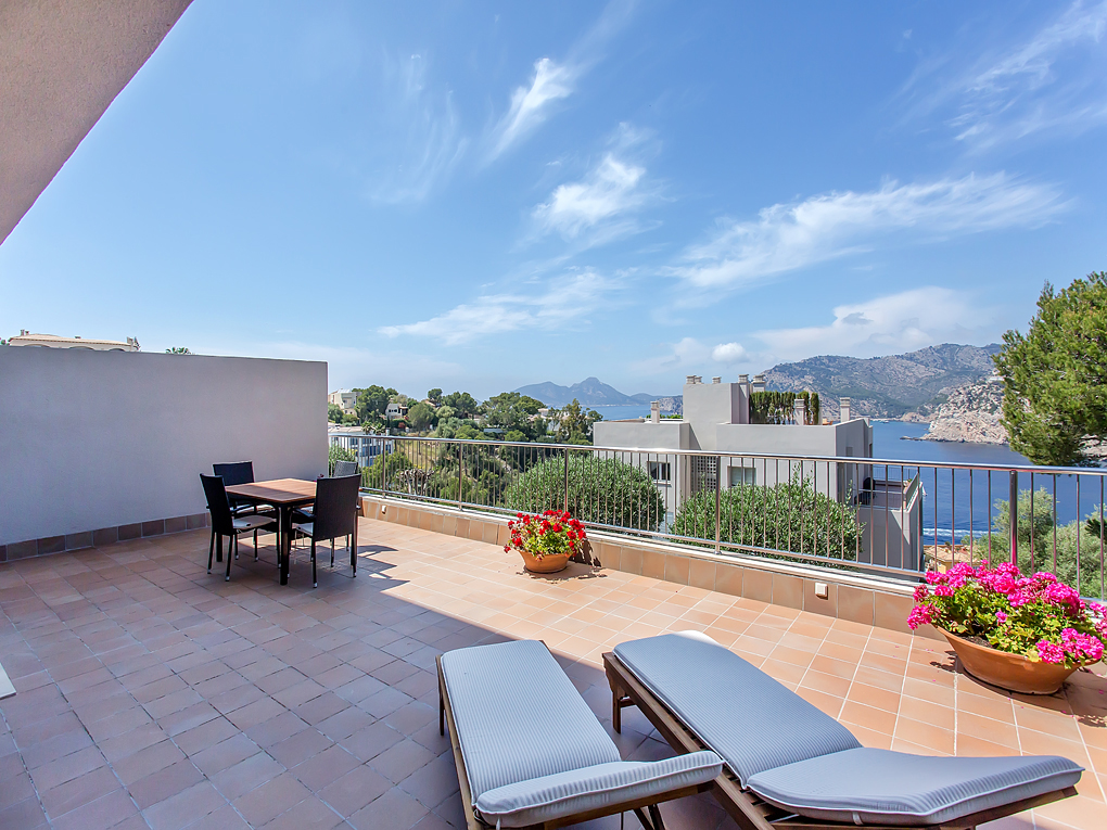 This beautiful property is located in a calm and exclusive community in Puerto de Andratx. This small community consisting of a few accommodation units is situated on a hill and offers spectacular views on to the port entrance, to the offshore island Dragonera which stands under natural conservation, over the open sea and on clear days to Ibiza.