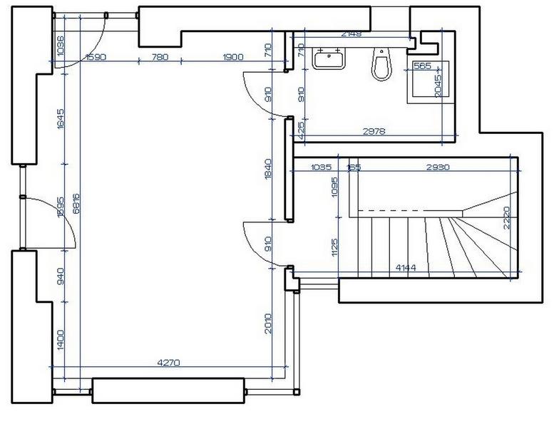 - Guest cloakroom (ground floor). Fully equipped, painted in light ecru colour, wooden flooring, natural stone walls.