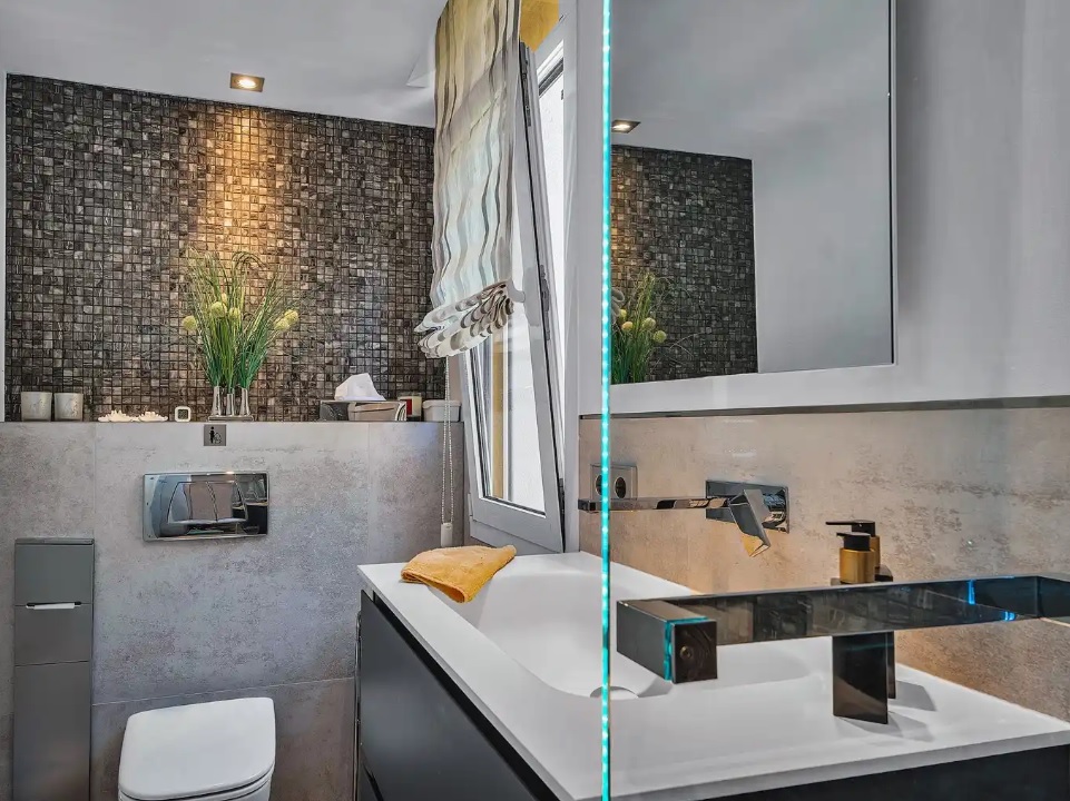 Wnętrze zachwyca wspaniałym designem i dbałością o detale. Całość niedawno przeszła gruntowną renowację, podczas której użyto wyłącznie materiałów najwyższej jakości. Przez duże panoramiczne okna rozpościera się zapierający dech w piersiach widok na morze, który dodatkowo potęguje wyjątkowy charakter tego miejsca. Jednym z największych atutów nieruchomości jest starannie zagospodarowany taras na dachu o powierzchni 192mkw, na którym znajduje się prywatny basen – idealne miejsce na relaks i podziwianie malowniczych krajobrazów.