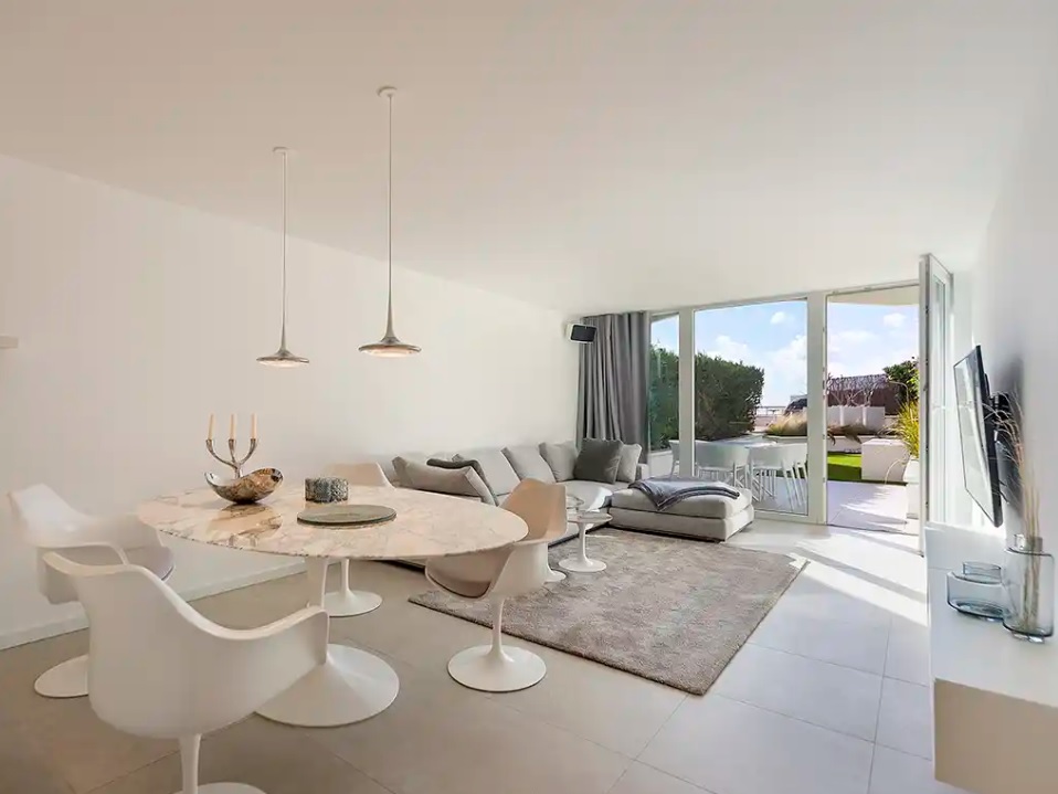 Największą atrakcją mieszkania jest niewątpliwie pięknie zaaranżowany taras. Można stąd podziwiać nie tylko niezrównany widok na lśniące morze, ale także na urokliwy port i zakotwiczone jachty. Taras oferuje nie tylko ekskluzywne miejsce na odpoczynek, ale także tworzy imponującą atmosferę na towarzyskie wieczory i godziny relaksu.