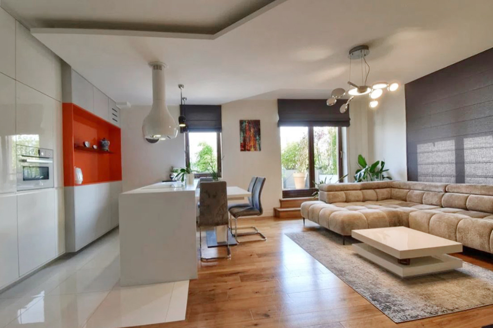 The apartment is modern. The apartment with high class materials, like natural wooden floors. There is possibility of separating the third room.