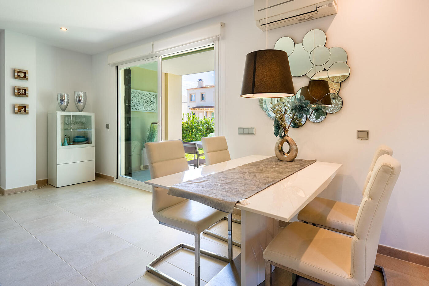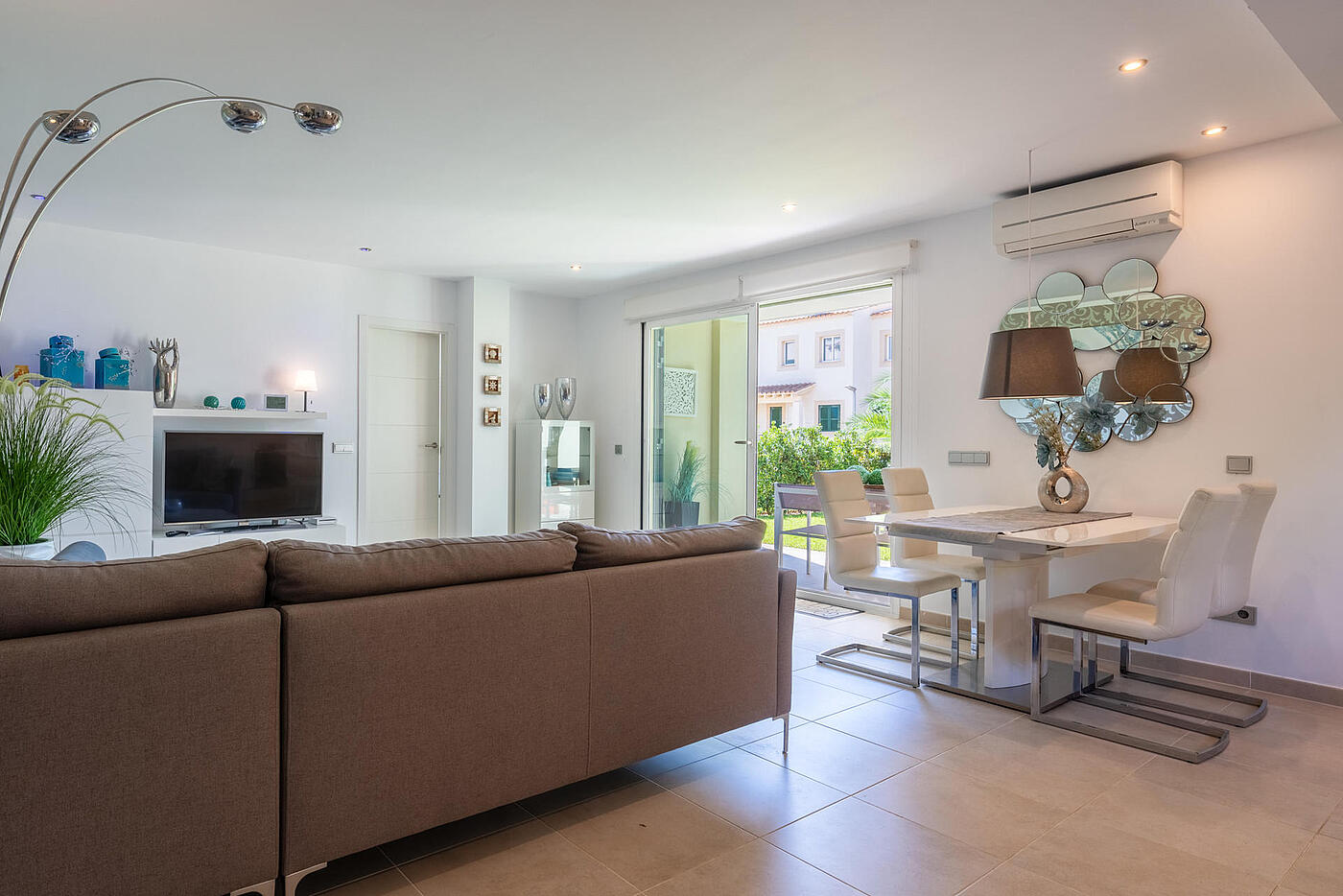 Apartament zlokalizowany jest na parterze budynku, który mieści się na terenie ekskluzywnego kompleksu mieszkaniowego Residencial Miguel de Cervantes w Cala Anguila. Osiedle posida piękny ogród oraz basen ze słoną wodą.