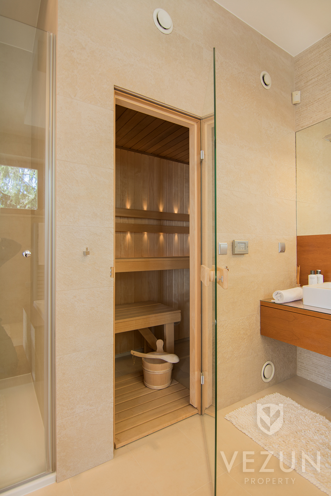 - duża sypialnia małżeńska o pow. 35 mkw z prywatną łazienką o pow. 10,5 mkw i garderobą o pow. 7 mkw,