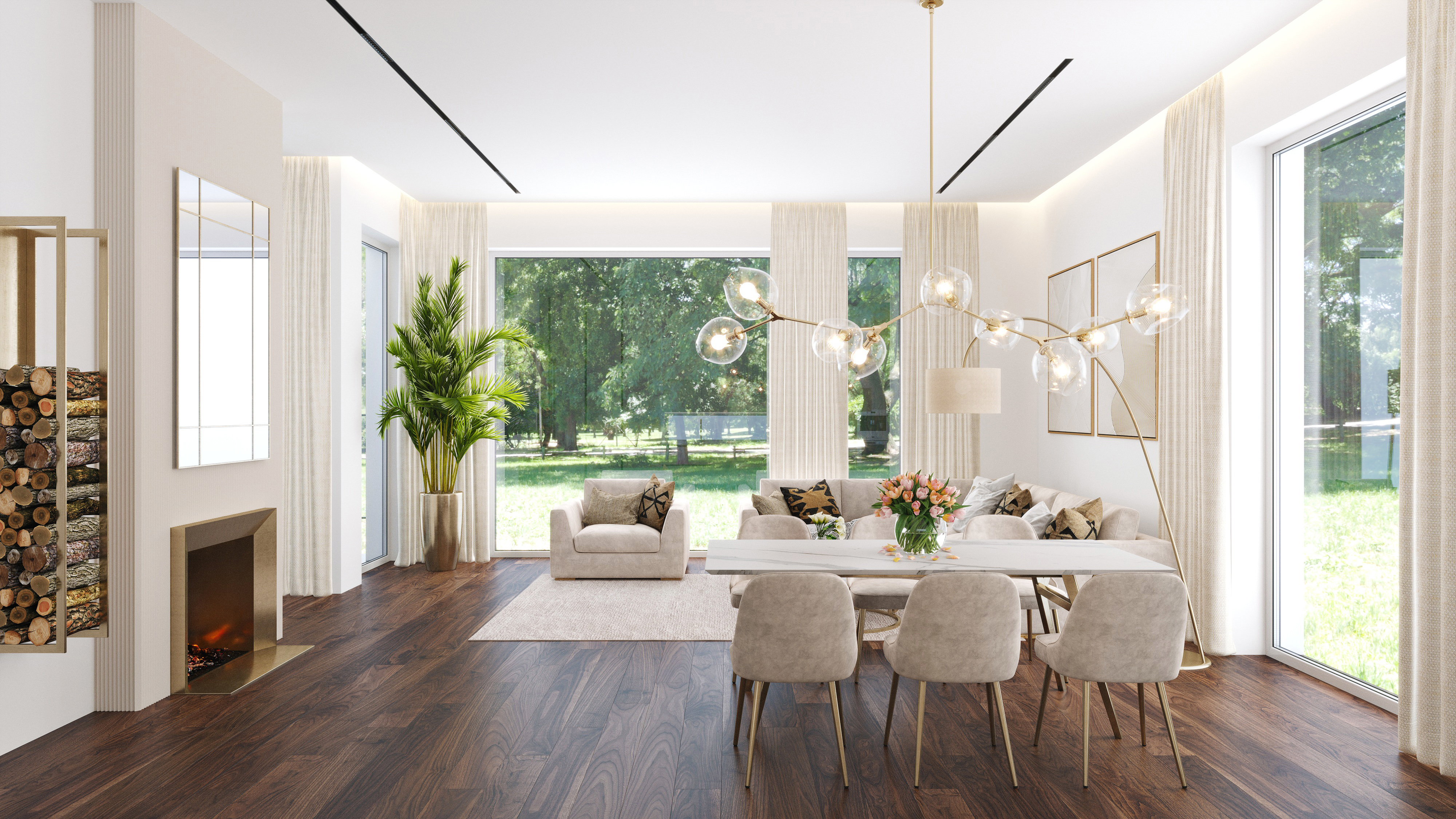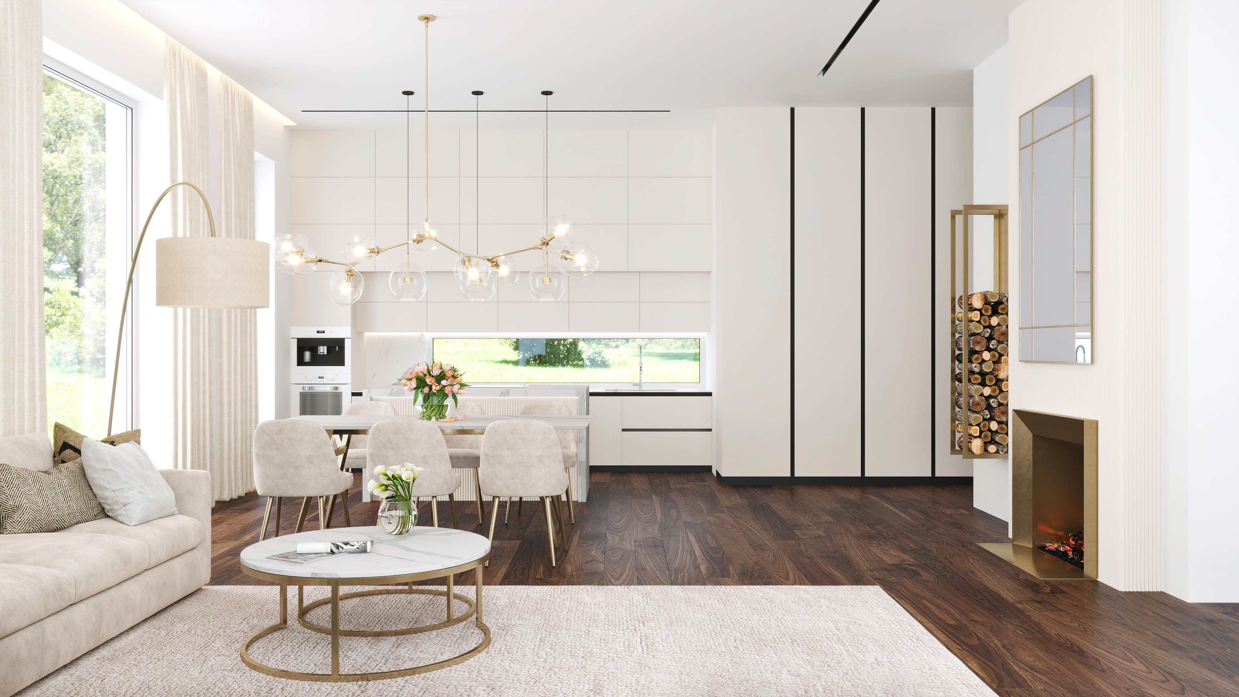 Wille miejskie z ogrodami, obszernymi garażami dwustanowiskowymi. Każdy dom (230 m2) ma dwie, pełne, kondygnacje mieszkalne, ogród oraz garaż dwustanowiskowy (ponad 40 m2) i pomieszczenie na hobby (ponad 25 m2). Wysokość pomieszczeń (3,2 m) i otwarte przestrzenie nadają ekskluzywny charakter.