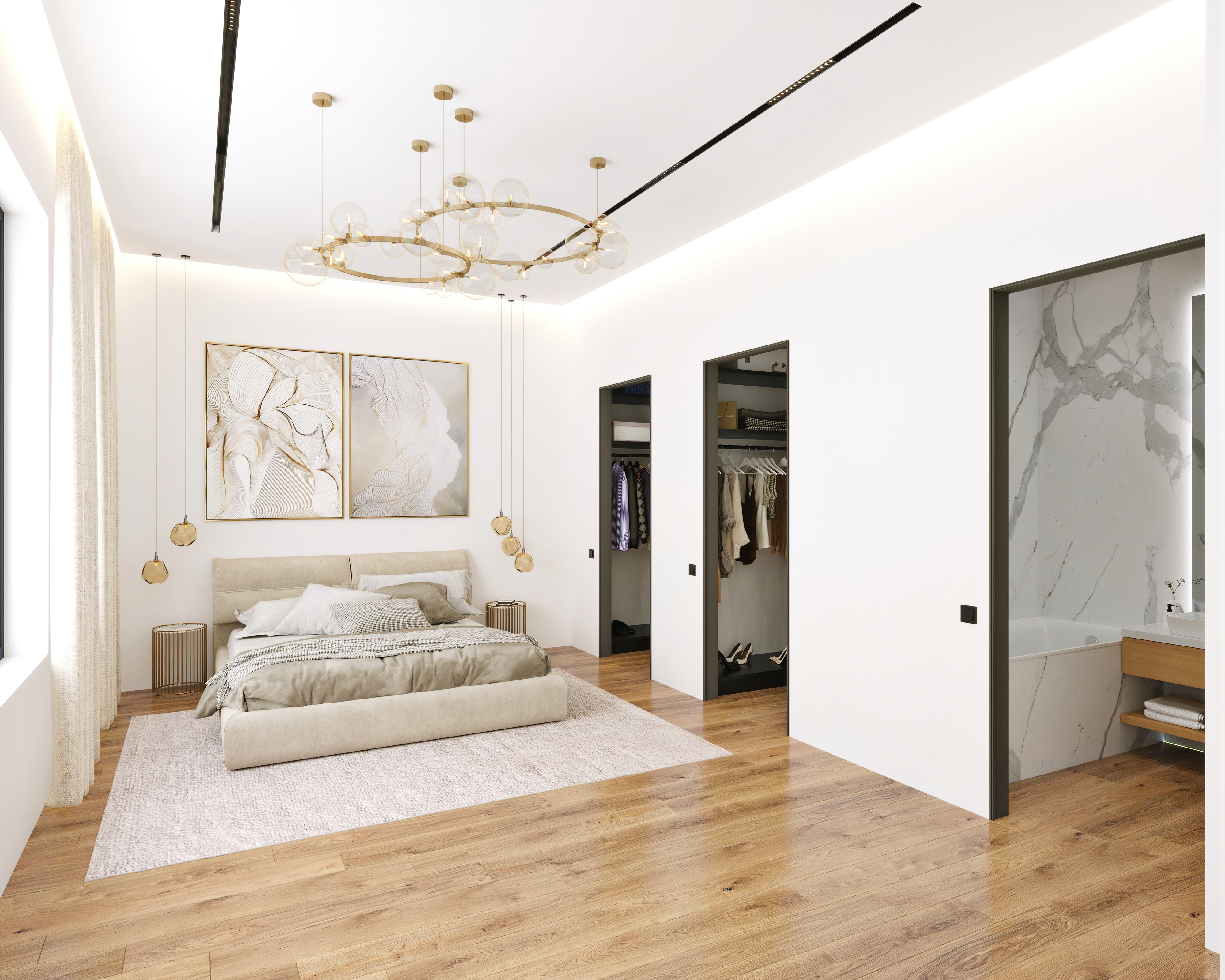 • 3 sypialnie w tym obszerna master bedroom z garderobą i łazienką (łącznie ok. 30 m2).