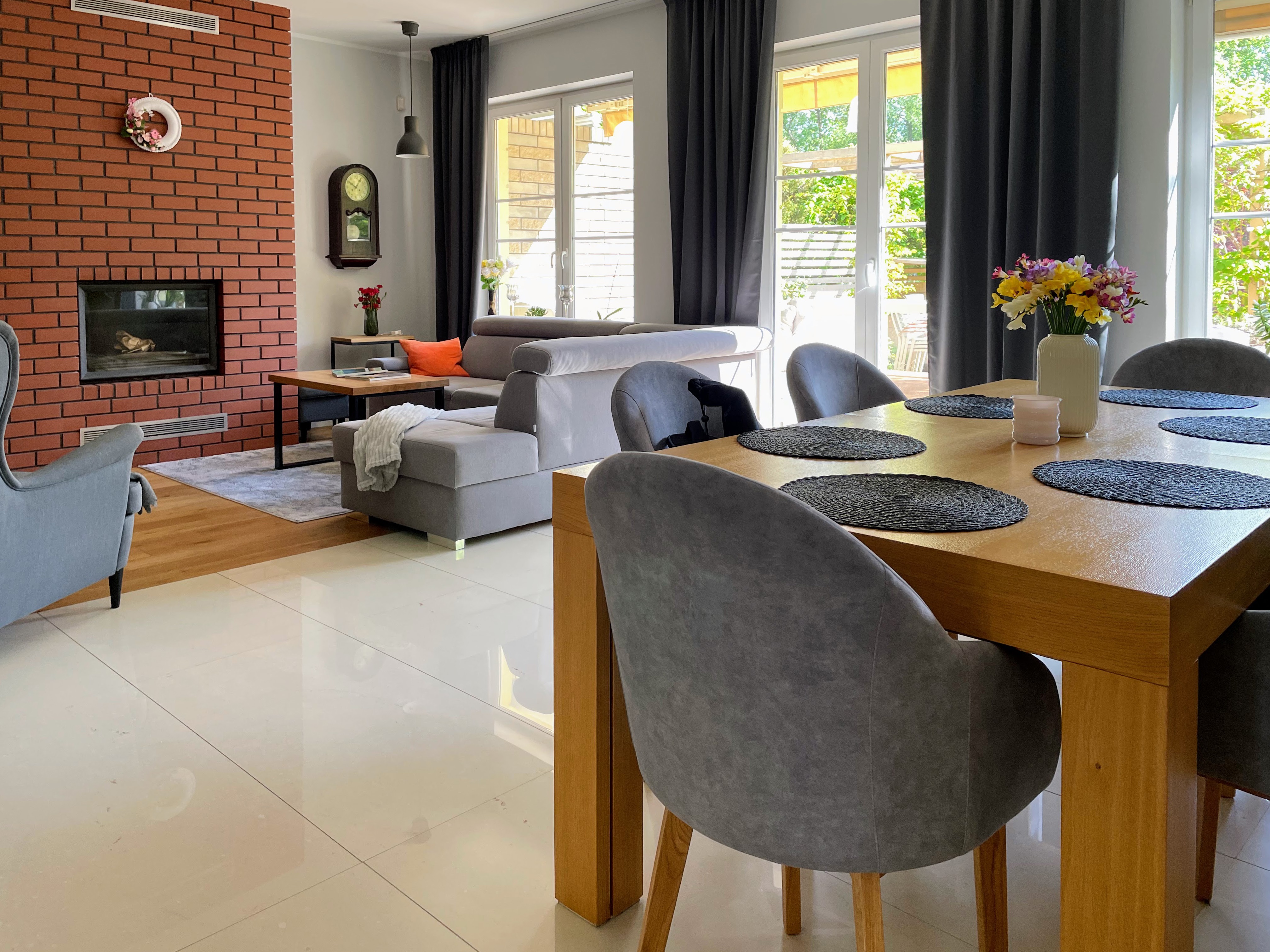 - Salon połączony z jadalnią i wyjściem na taras