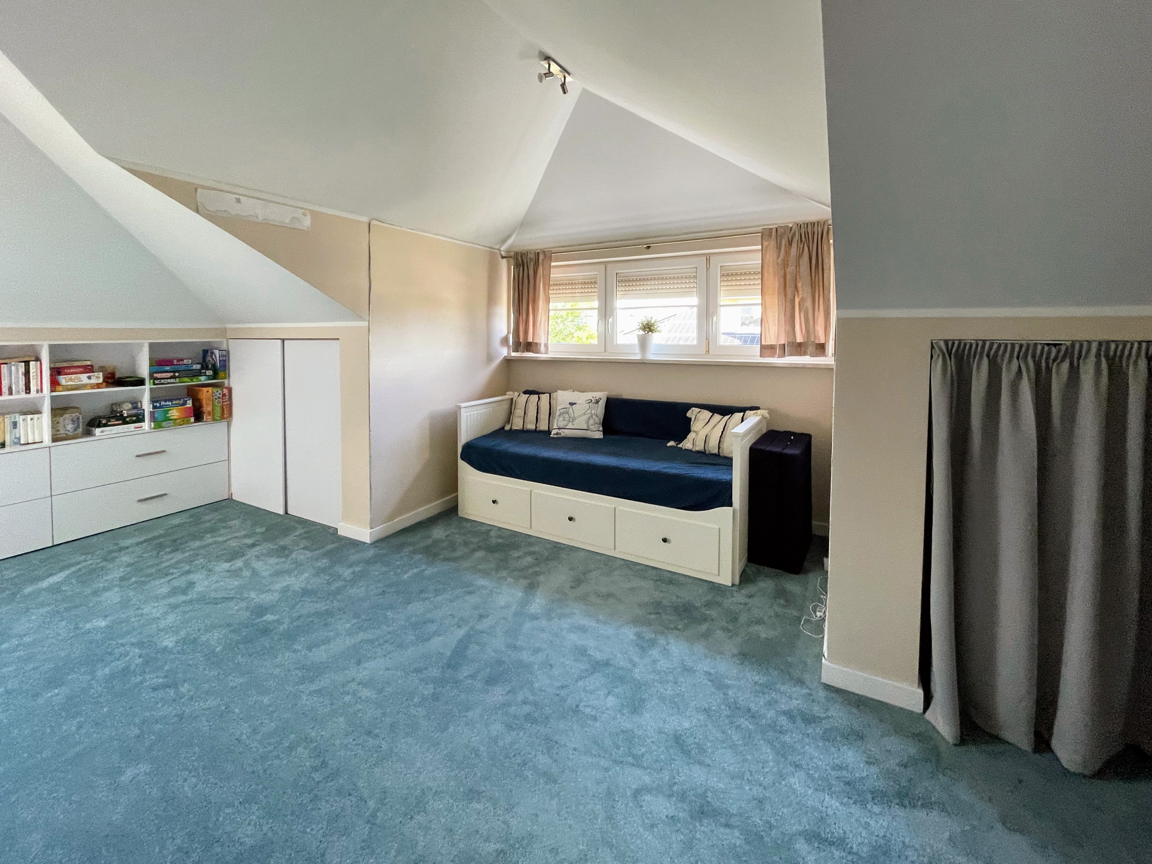 Poddasze zostało zaprojektowane jako przestronne i przytulne pomieszczenie, które może pełnić funkcję doskonałego miejsca do pracy lub świetnej strefy zabawy dla dzieci. Zostały tam stworzone obszerne miejsca do przechowywania. Dodatkowo, na tej kondygnacji znajduje się również trzecia łazienka.