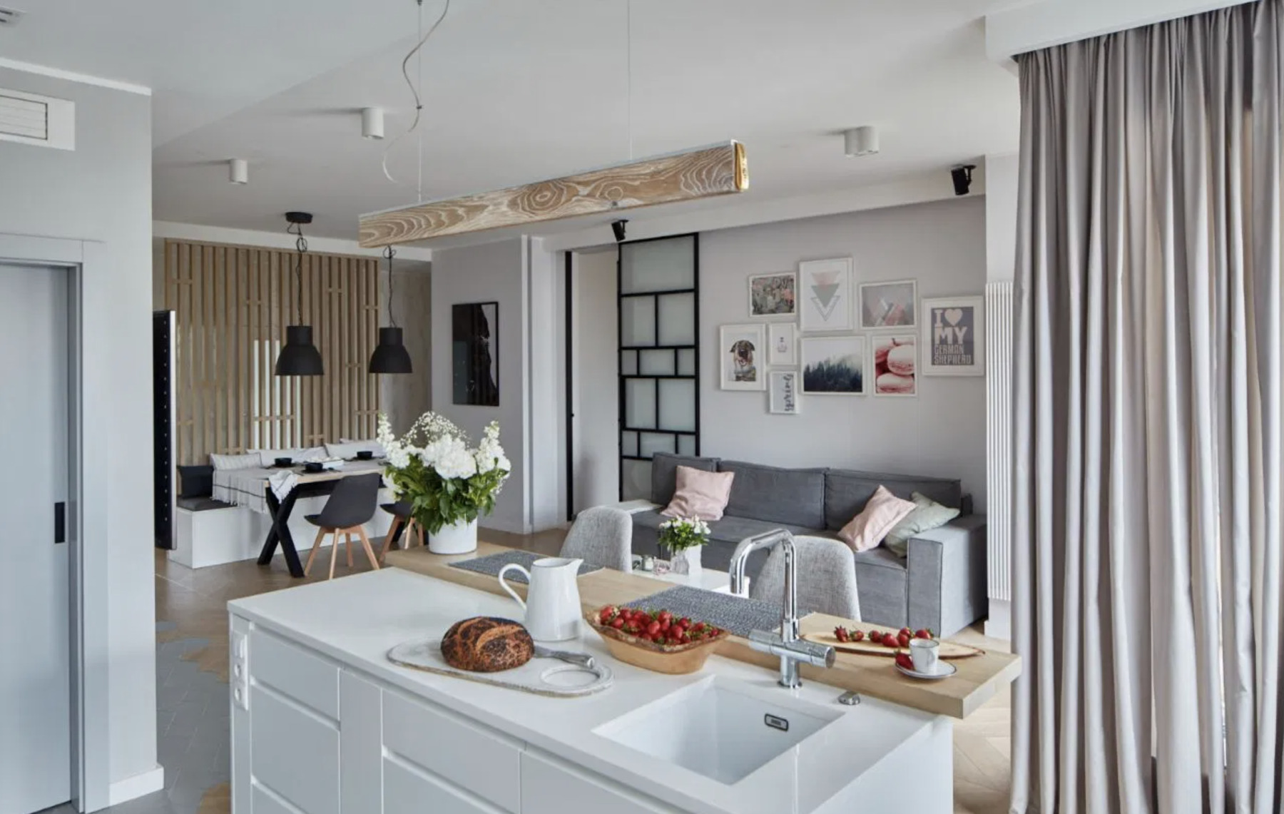 - Salon połączony z kuchnią