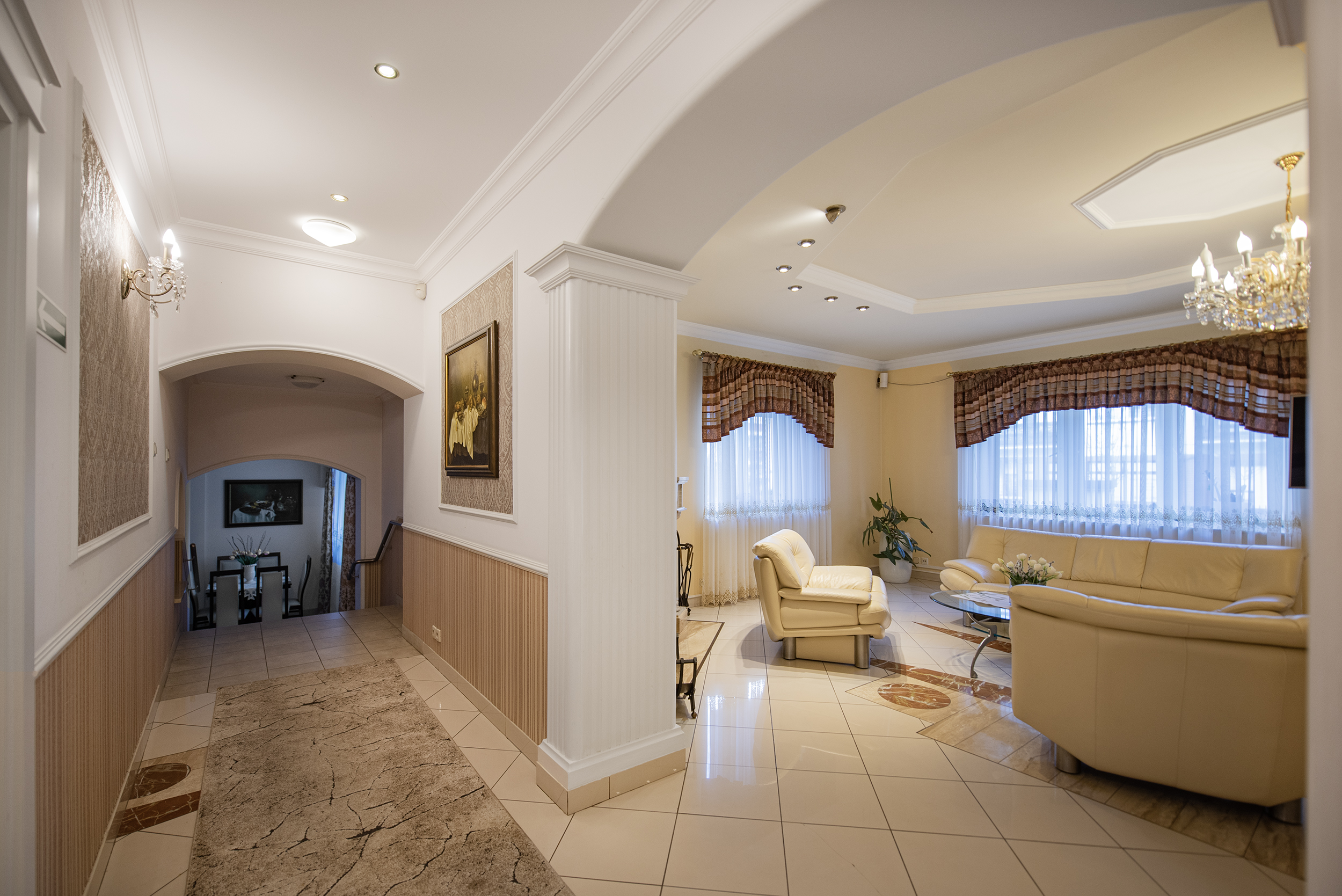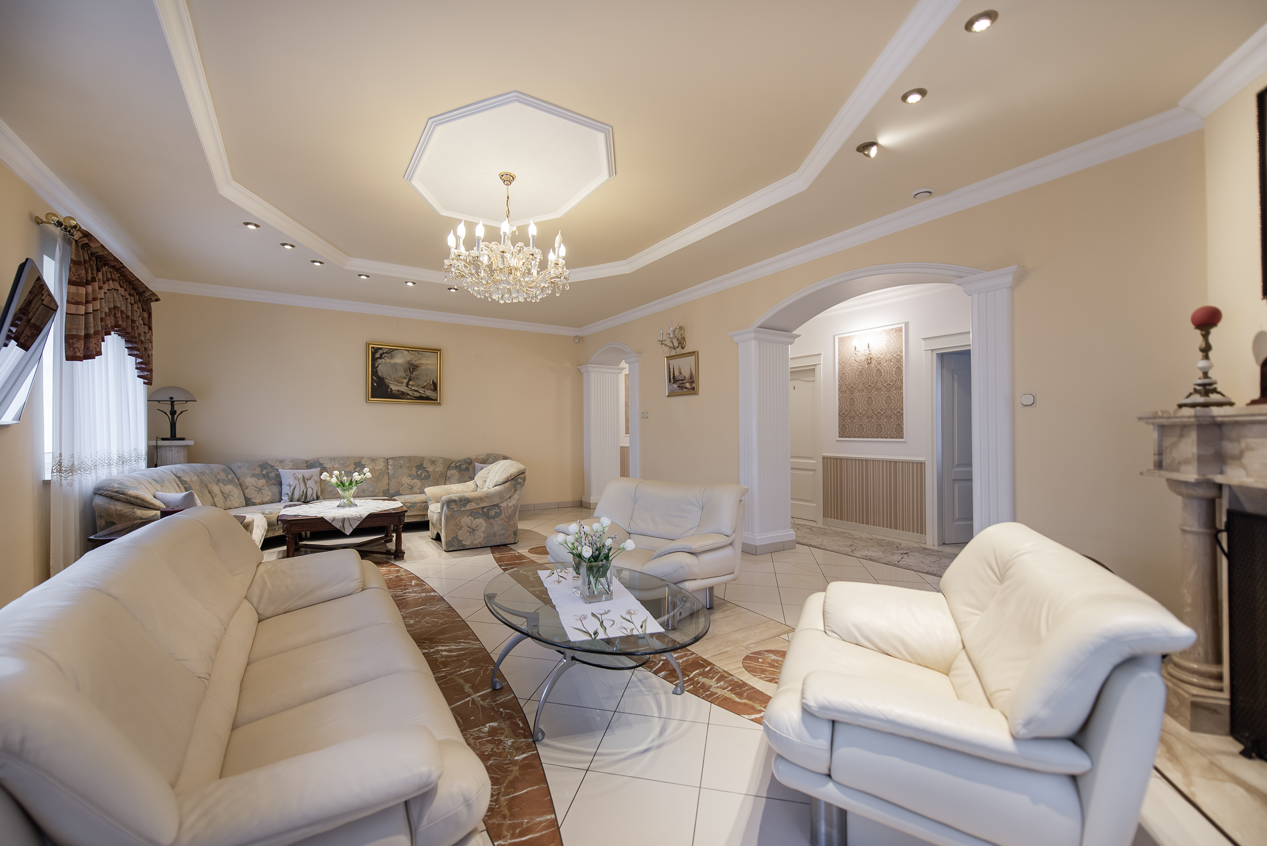 - Salon z kominkiem