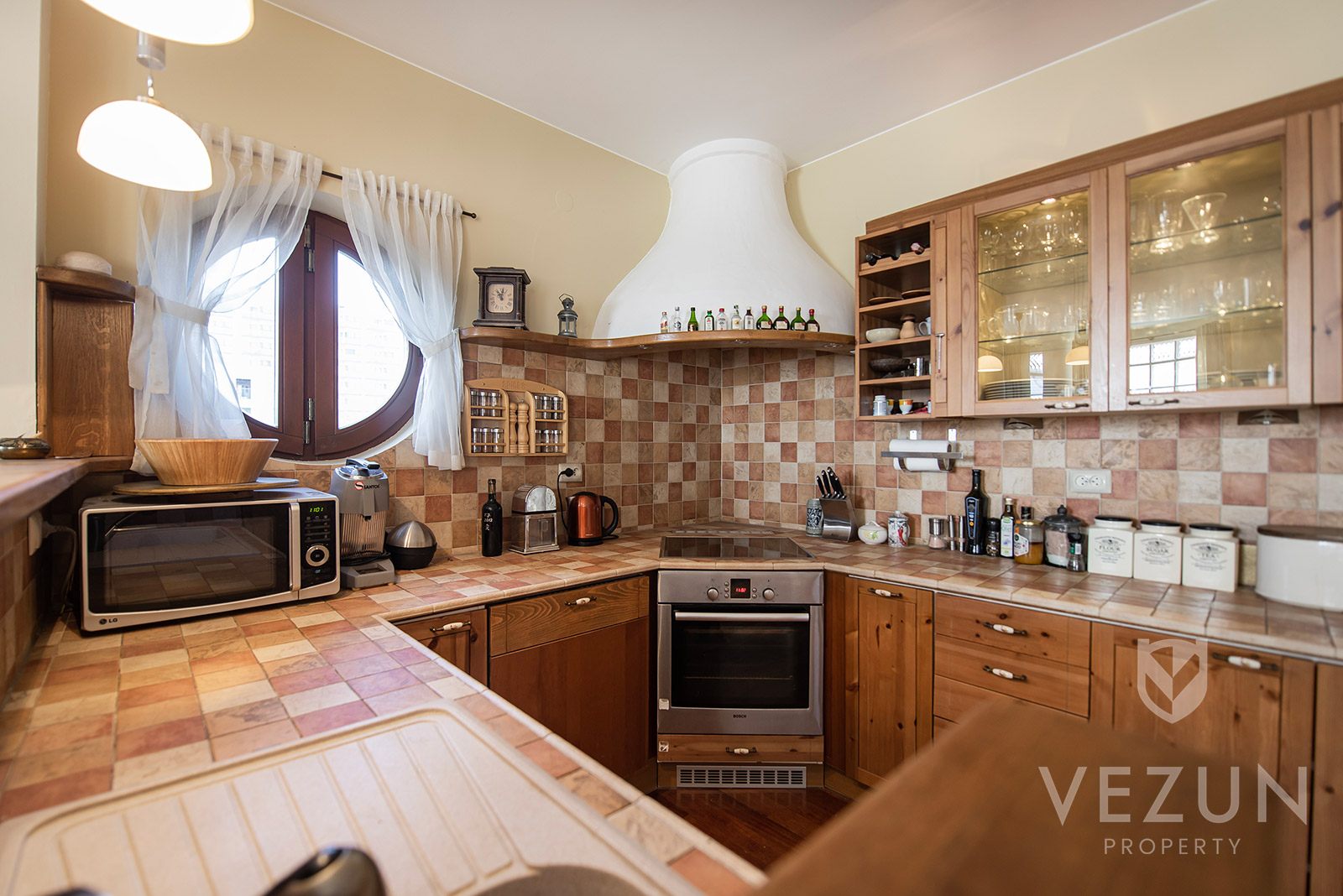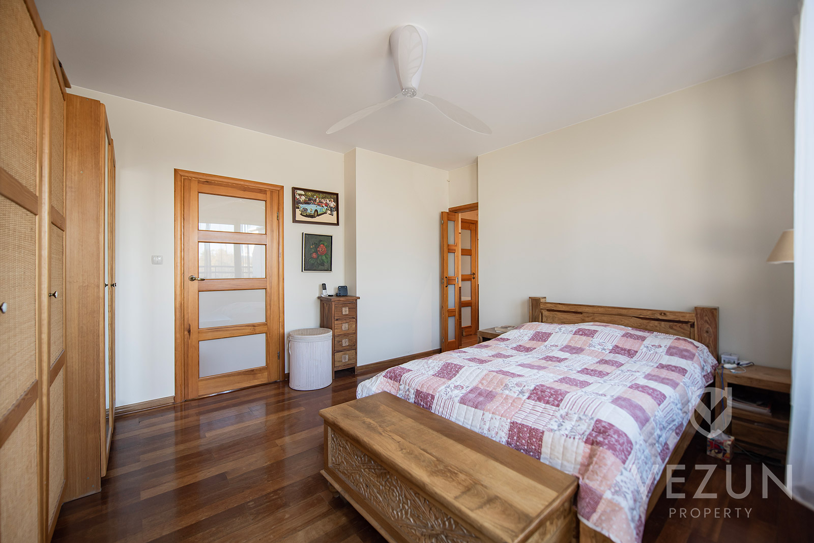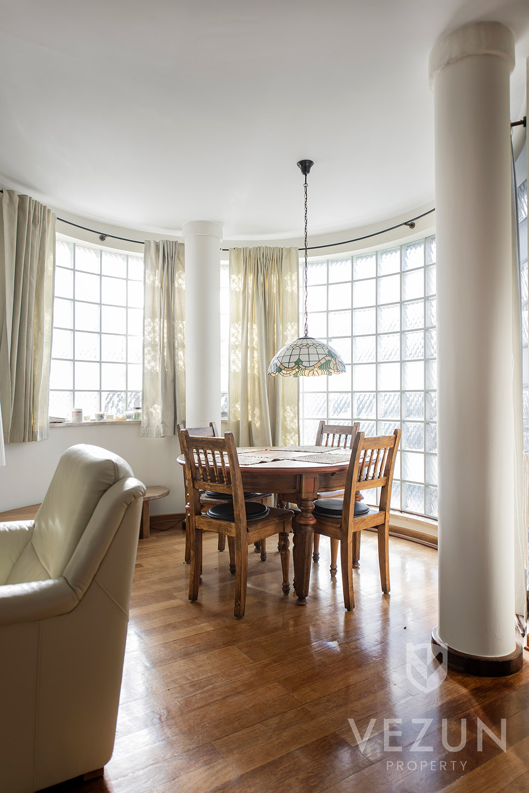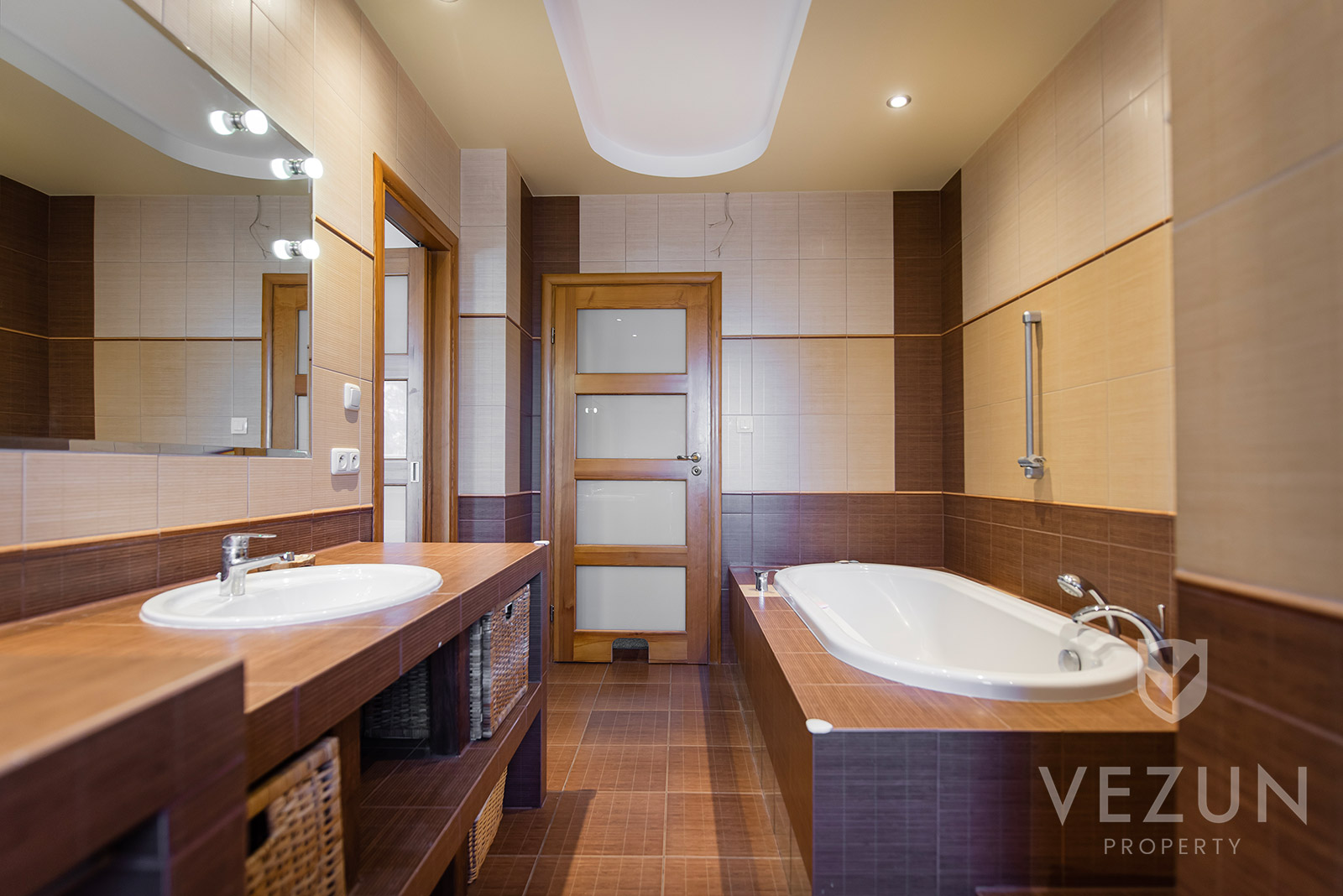 Stylowy, klasyczny apartament zachwyca przytulną atmosferą, którą podkreślają liczne drewniane akcenty oraz otwarta, przestronna aranżacja wnętrza. Duże okna, wychodzące na trzy strony świata, wpuszczają obfite ilości naturalnego światła przez cały dzień. Apartament posiada przestronny, 100-metrowy taras, idealny na relaks i spotkania towarzyskie na świeżym powietrzu. Dodatkowo taras stanowi naturalne przedłużenie salonu, oferując widoki na zieleń oraz bliski kontakt z naturą przez cały rok.