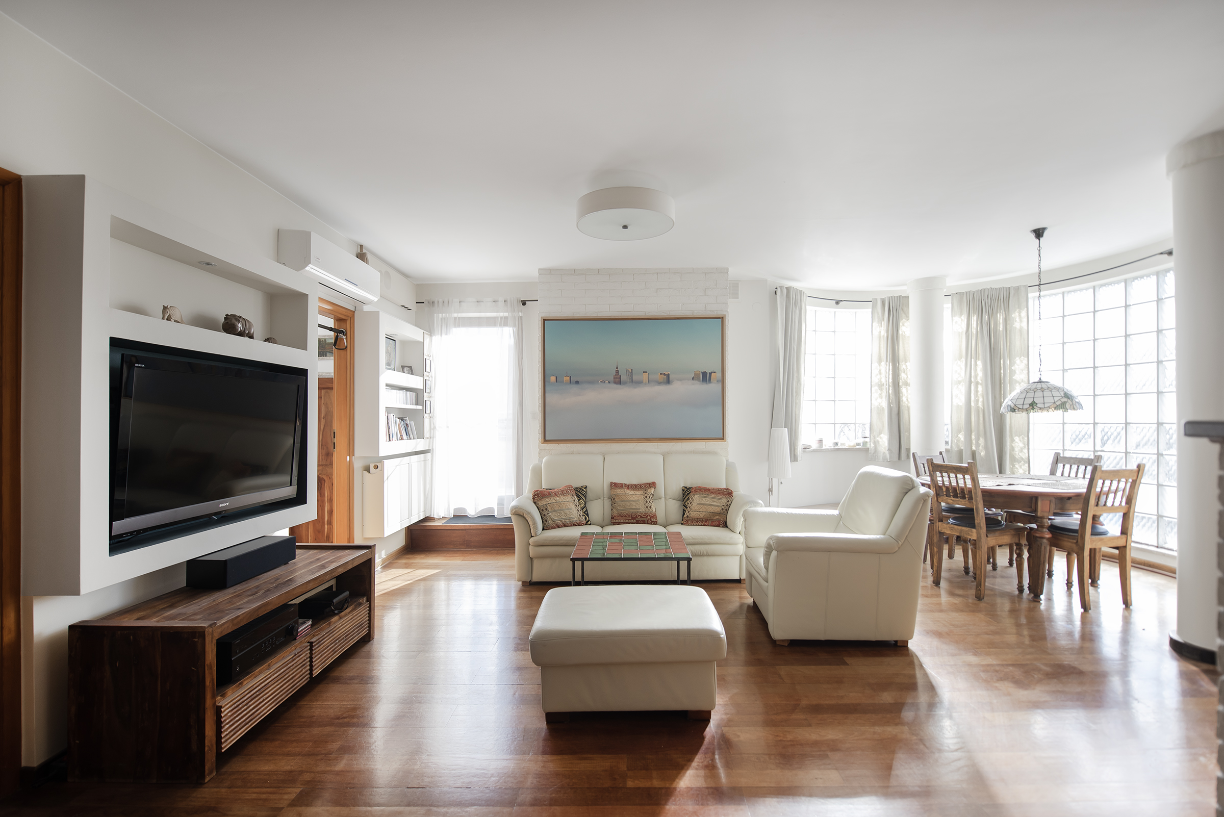 Stylowy, klasyczny apartament zachwyca przytulną atmosferą, którą podkreślają liczne drewniane akcenty oraz otwarta, przestronna aranżacja wnętrza. Duże okna, wychodzące na trzy strony świata, wpuszczają obfite ilości naturalnego światła przez cały dzień. Apartament posiada przestronny, 100-metrowy taras, idealny na relaks i spotkania towarzyskie na świeżym powietrzu. Dodatkowo taras stanowi naturalne przedłużenie salonu, oferując widoki na zieleń oraz bliski kontakt z naturą przez cały rok.