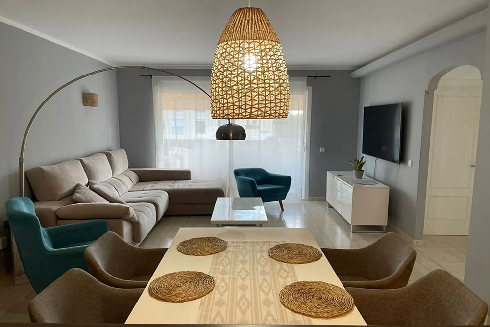Podłoga w salonie i sypialni wykonana została z eleganckiego drewnianego parkietu, zaś w kuchni oraz łazience zastosowano naturalny kamień. Na życzenie klienta sufit w salonie i sypialni może być wykończony drewnianymi belkami, co nawiązuje do tradycyjnego stylu majorkańskich rezydencji. Łazienkę wyposażono w wysokiej klasy urządzenia sanitarne.