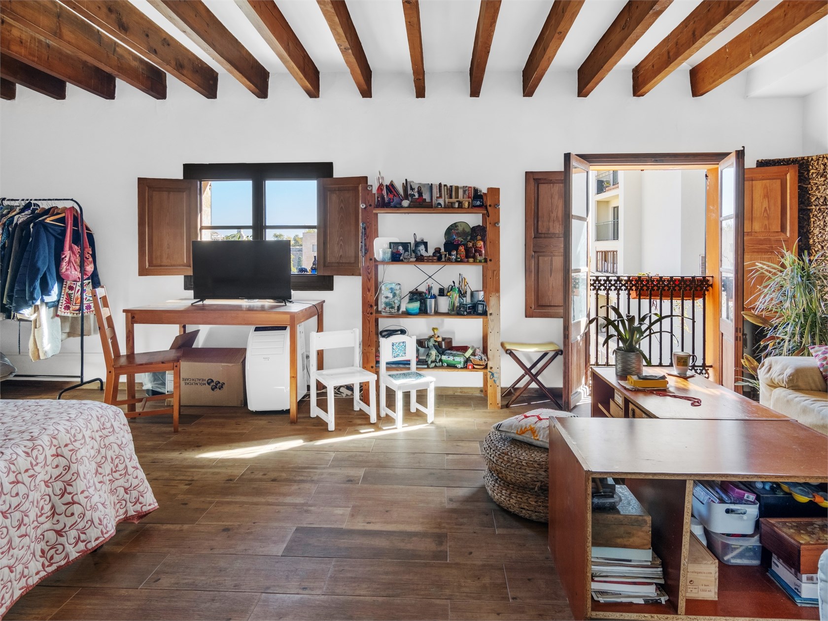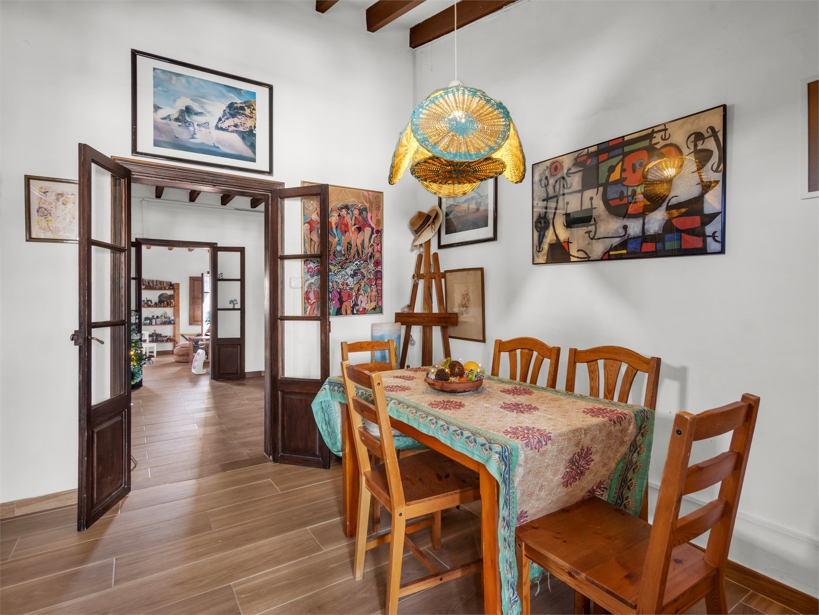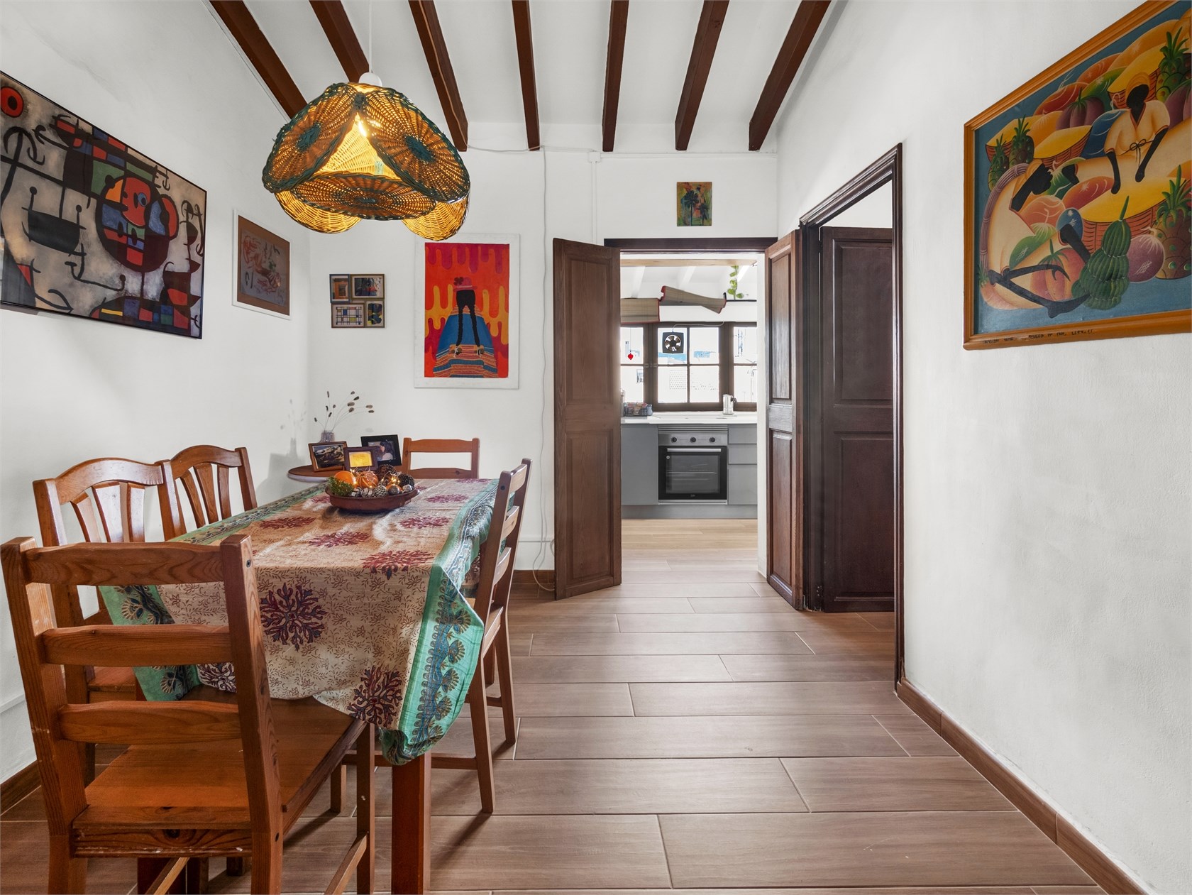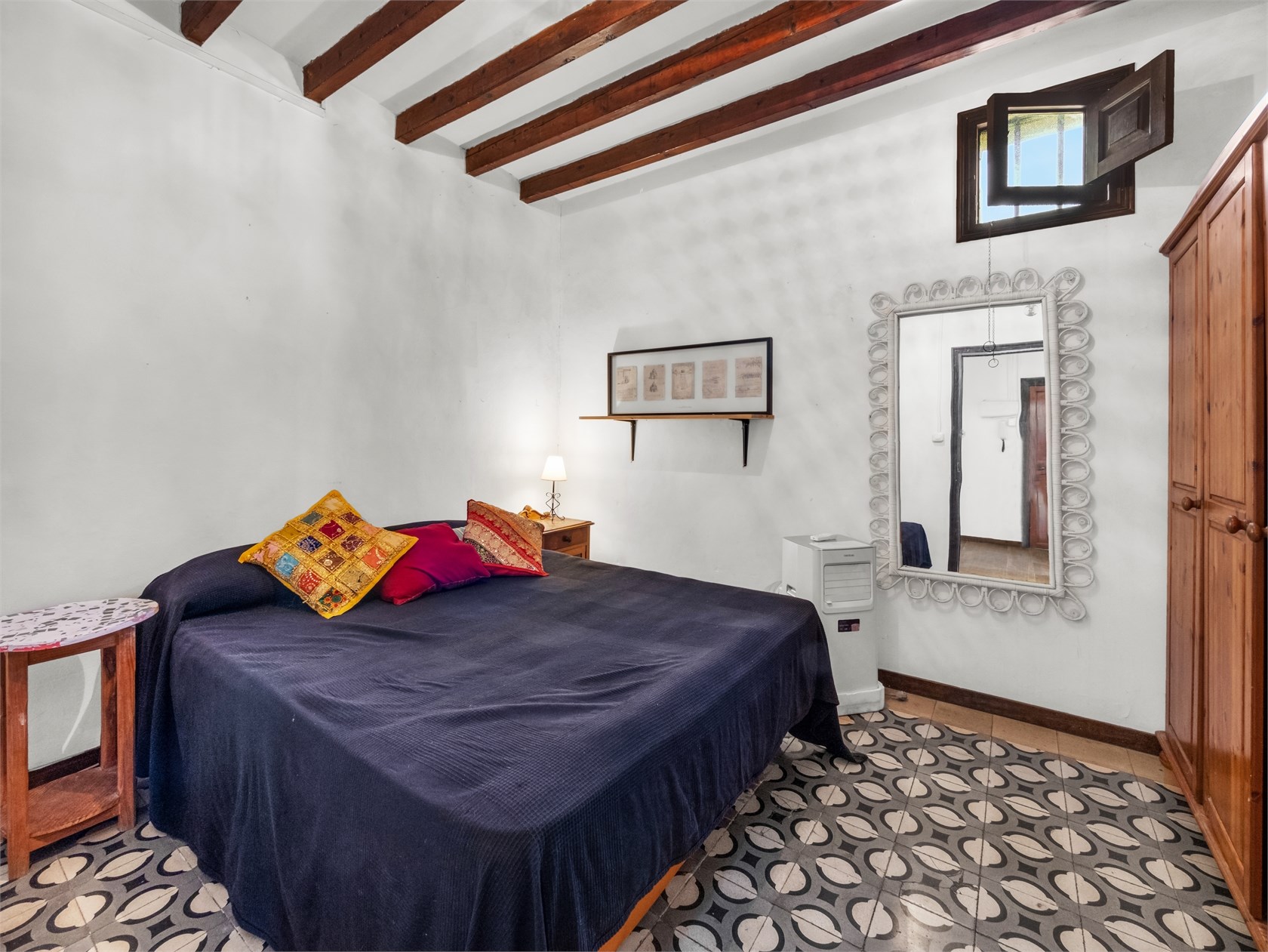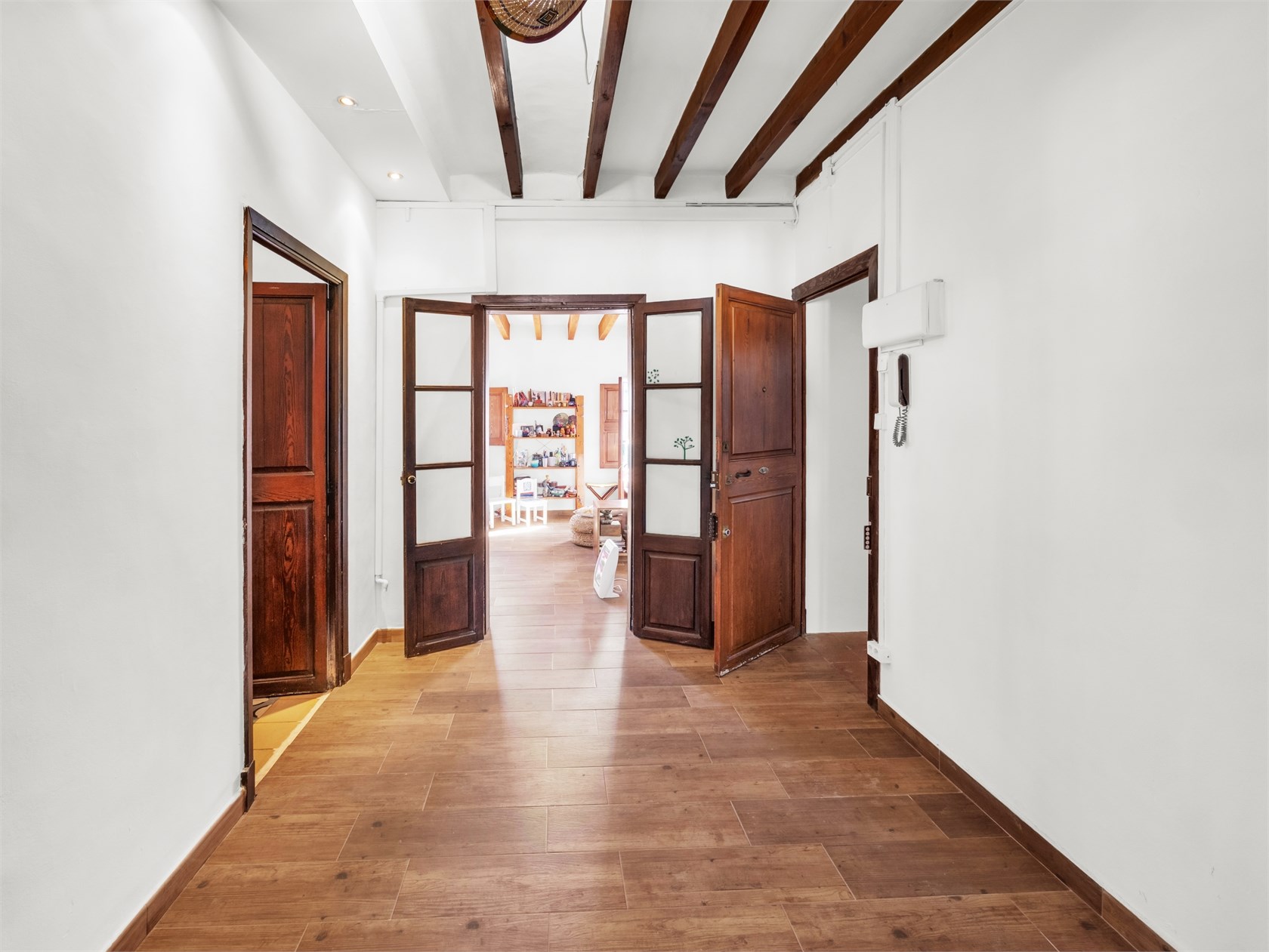 Przytulny apartament o majorkańskim charakterze. Mieszkanie znajduje się w starszej kamienicy z piękną, oryginalną klatką schodową wykonaną z drewna i płytek. W mieszkaniu zachowano drewniane belki stropowe i ramy okienne. Apartament składa się z salonu, kuchni, holu, dwóch sypialni oraz łazienki. Mieszkanie ma piękny widok na Bellverslottet.