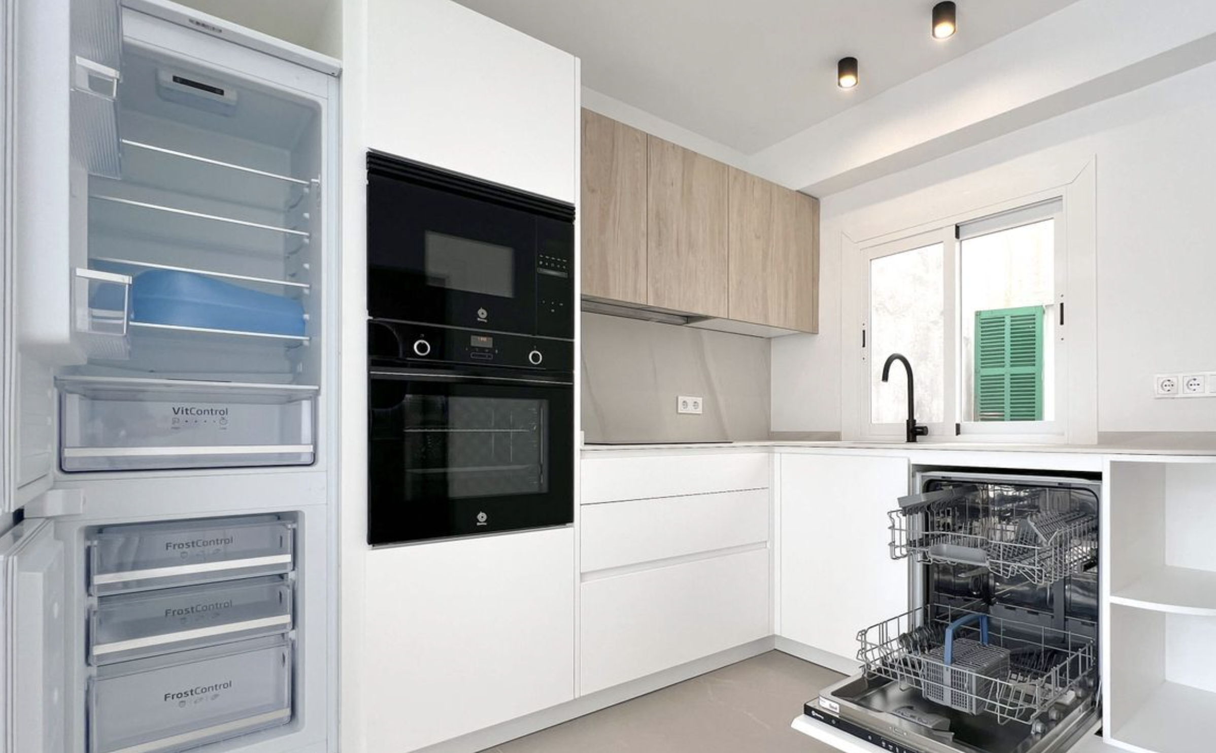 Mieszkanie ma powierzchnię około 66mkw i charakteryzuje się nowoczesnym stylem oraz jasnością dzięki dużym oknom. W środku znajdują się dwie sypialnie, nowoczesna łazienka z prysznicem i oknem, a także przestronny salon z wysokiej jakości markową kuchnią od Manacor, wyposażoną we wszystkie urządzenia elektryczne. W całym apartamencie zainstalowano nowe klimatyzatory, które zapewniają komfortową temperaturę przez cały rok.