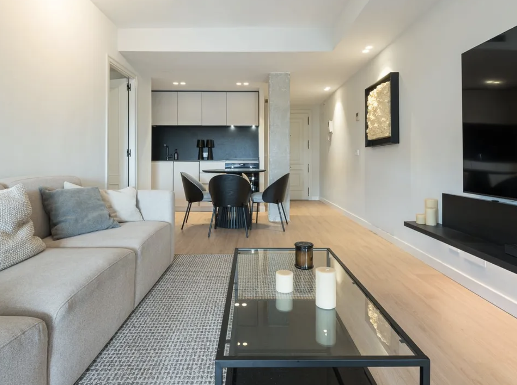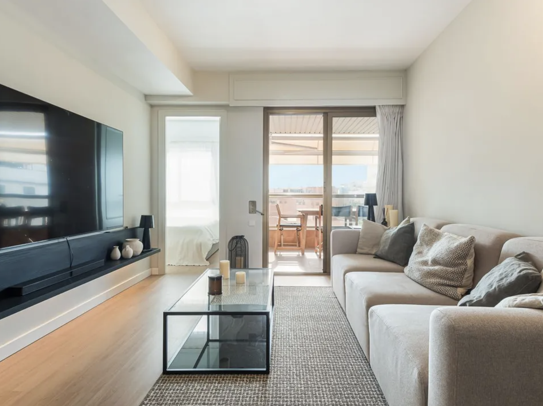 Duże okna od podłogi do sufitu oraz otwarty układ wnętrz zapewniają jasną i radosną atmosferę. Eleganckie wyposażenie apartamentu jest już wliczone w cenę zakupu. Komfort użytkowania podnosi także miejsce parkingowe w garażu, które znacznie ułatwia codzienne życie w tętniącym życiem centrum Palmy.