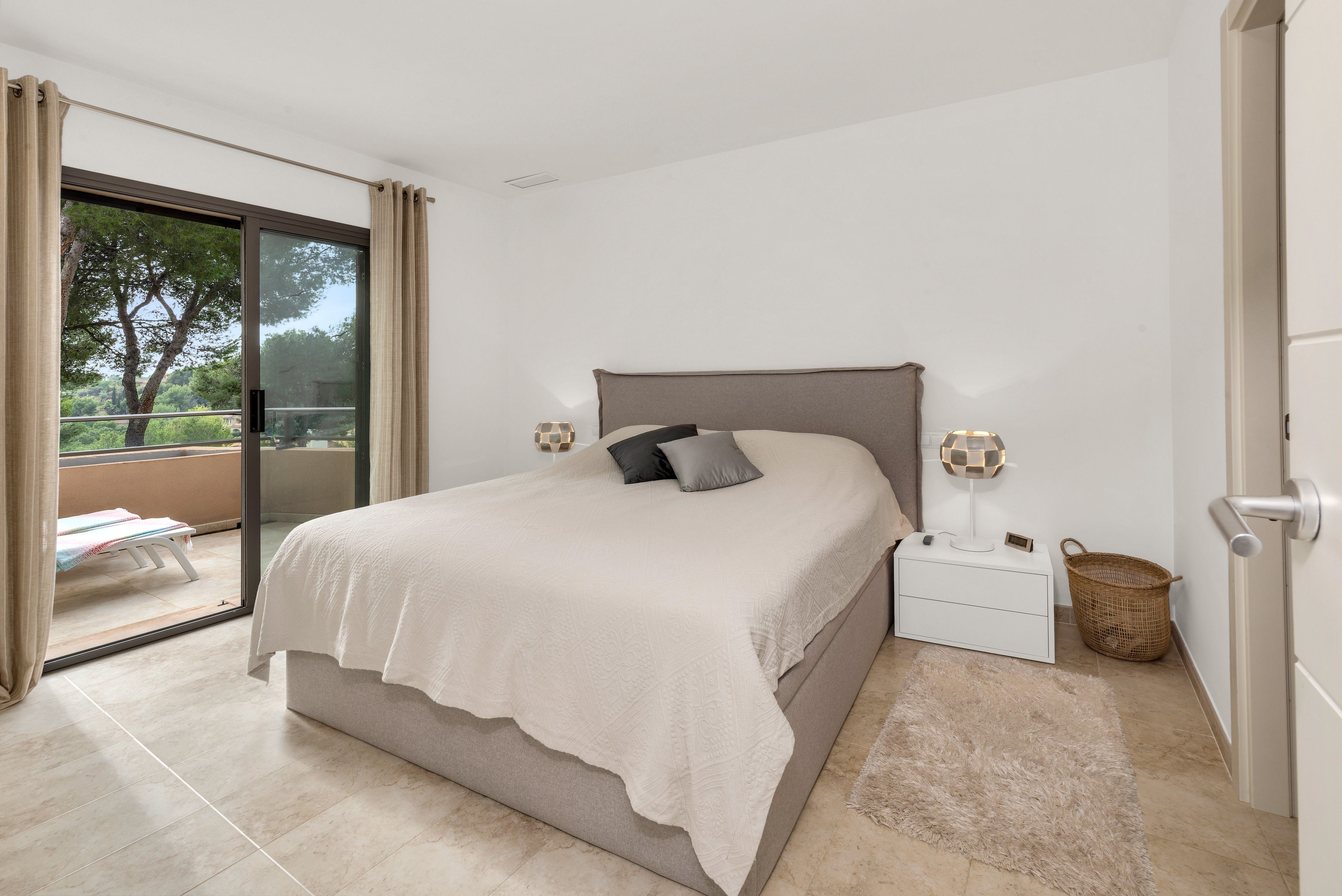 Główna część dzienna płynnie przechodzi w przestronny taras, na którym znajduje się wygodna sofa oraz stół jadalny dla czterech osób, idealny do delektowania się poranną kawą lub romantycznymi kolacjami przy zachodzie słońca. Dodatkowy, południowo-zachodni taras oferuje widok na wspólny basen i stanowi doskonałe miejsce do relaksu.