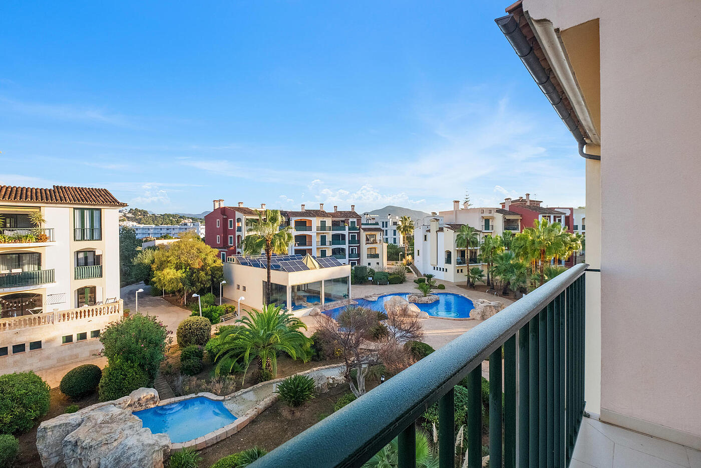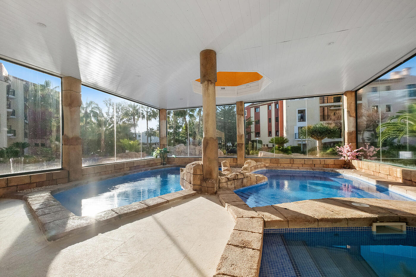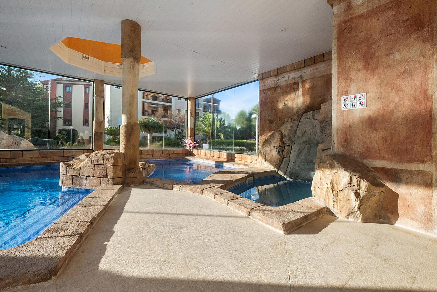 Mieszkalnie znajduję się w zadbanym kompleksie mieszkaniowym z 2003 roku w Santa Ponsa, zaledwie 20 metrów od najlepszych restauracji i 100 metrów od plaży. Położony w ekskluzywnym kompleksie mieszkalnym, oferuje dostęp do licznych udogodnień, takich jak podgrzewany kryty basen z jacuzzi, dwa zimne kryte baseny oraz basen zewnętrzny z wydzieloną strefą dla dzieci.