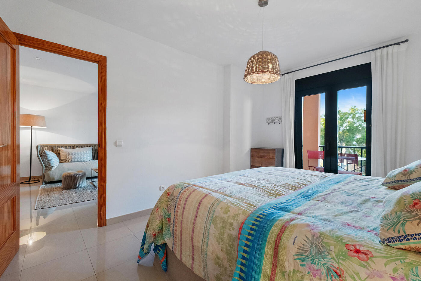 Główna sypialnia to komfortowy apartament z własną łazienką wyposażoną w wannę oraz wyjściem na taras. Druga sypialnia ma dostęp do balkonu z widokiem na część wspólną. Druga łazienka posiada prysznic. Oba pokoje wyposażone są w wbudowane szafy.