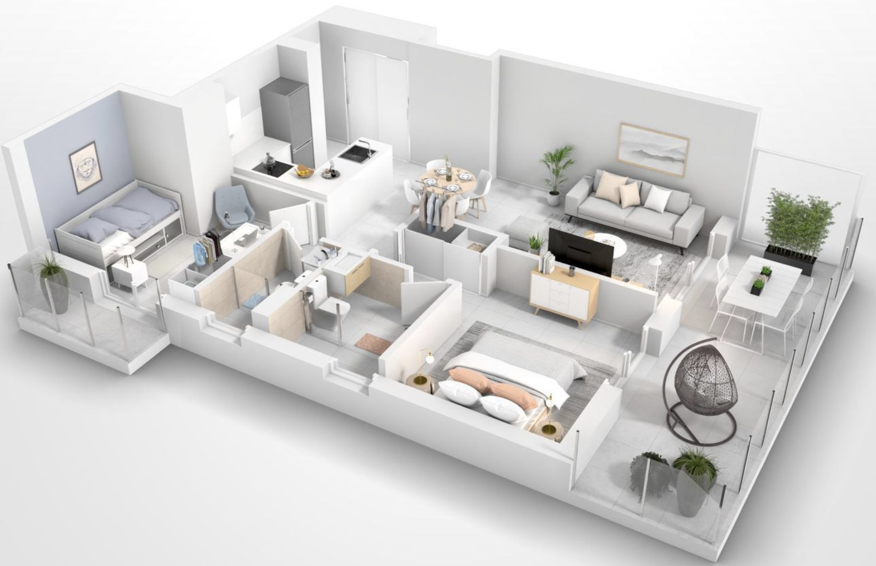 Nowoczesny i minimalistyczny apartament wyróżnia się wysokiej jakości wykończeniem i dbałością o najmniejsze detale. Na powierzchnię 61mkw składa się: