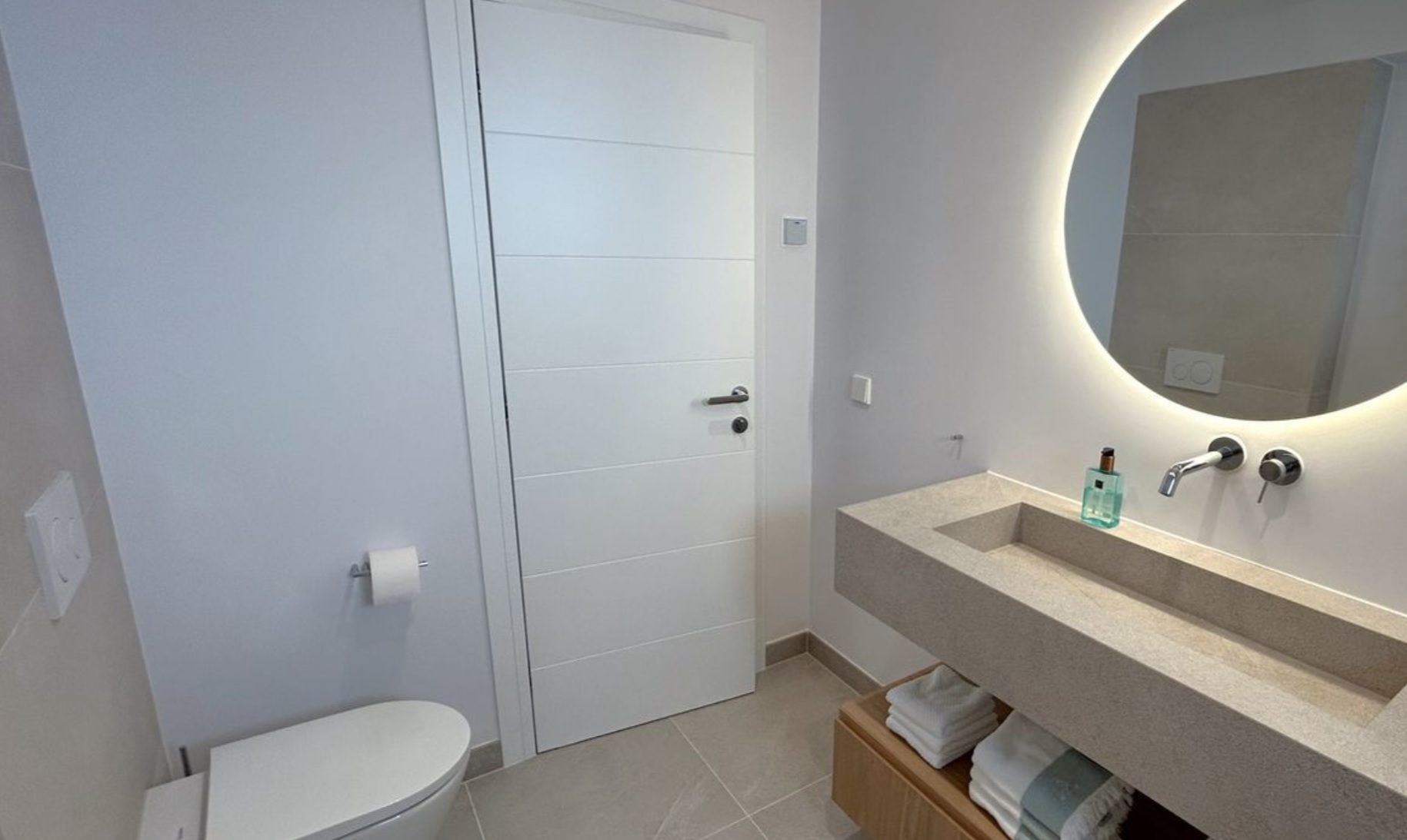 Apartament oferuje trzy komfortowe sypialnie, dwie eleganckie łazienki oraz dodatkową toaletę dla gości. Główna sypialnia z prywatną łazienką to prawdziwa oaza spokoju – każdy detal wnętrza został starannie zaprojektowany i wykończony z najwyższą dbałością o jakość.