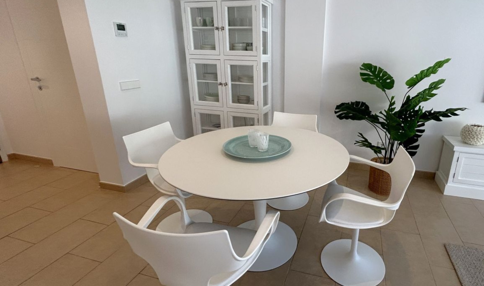 Przestronny, otwarty salon z jadalnią i nowoczesną kuchnią tworzy harmonijną przestrzeń idealną do życia i wypoczynku. Z salonu prowadzi wyjście na taras, z którego rozciąga się spektakularny widok na morze.