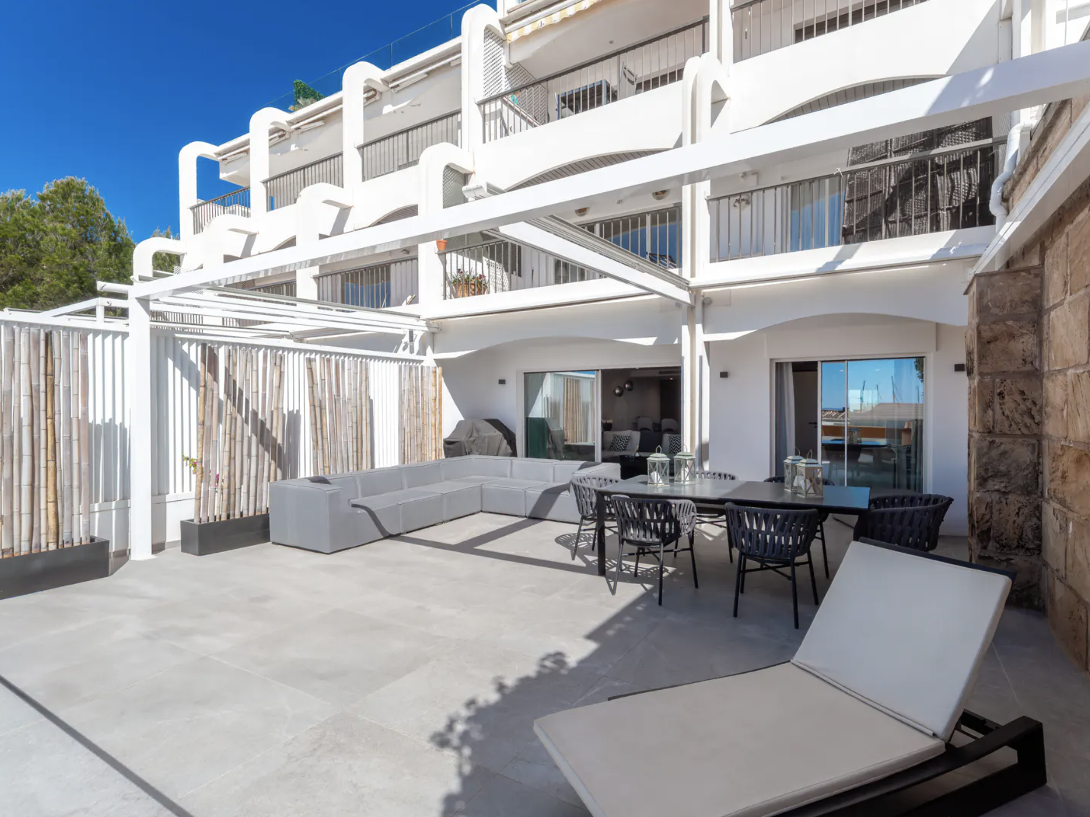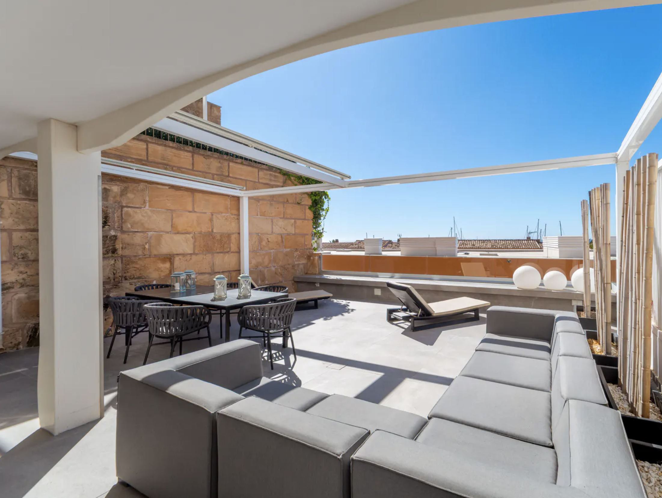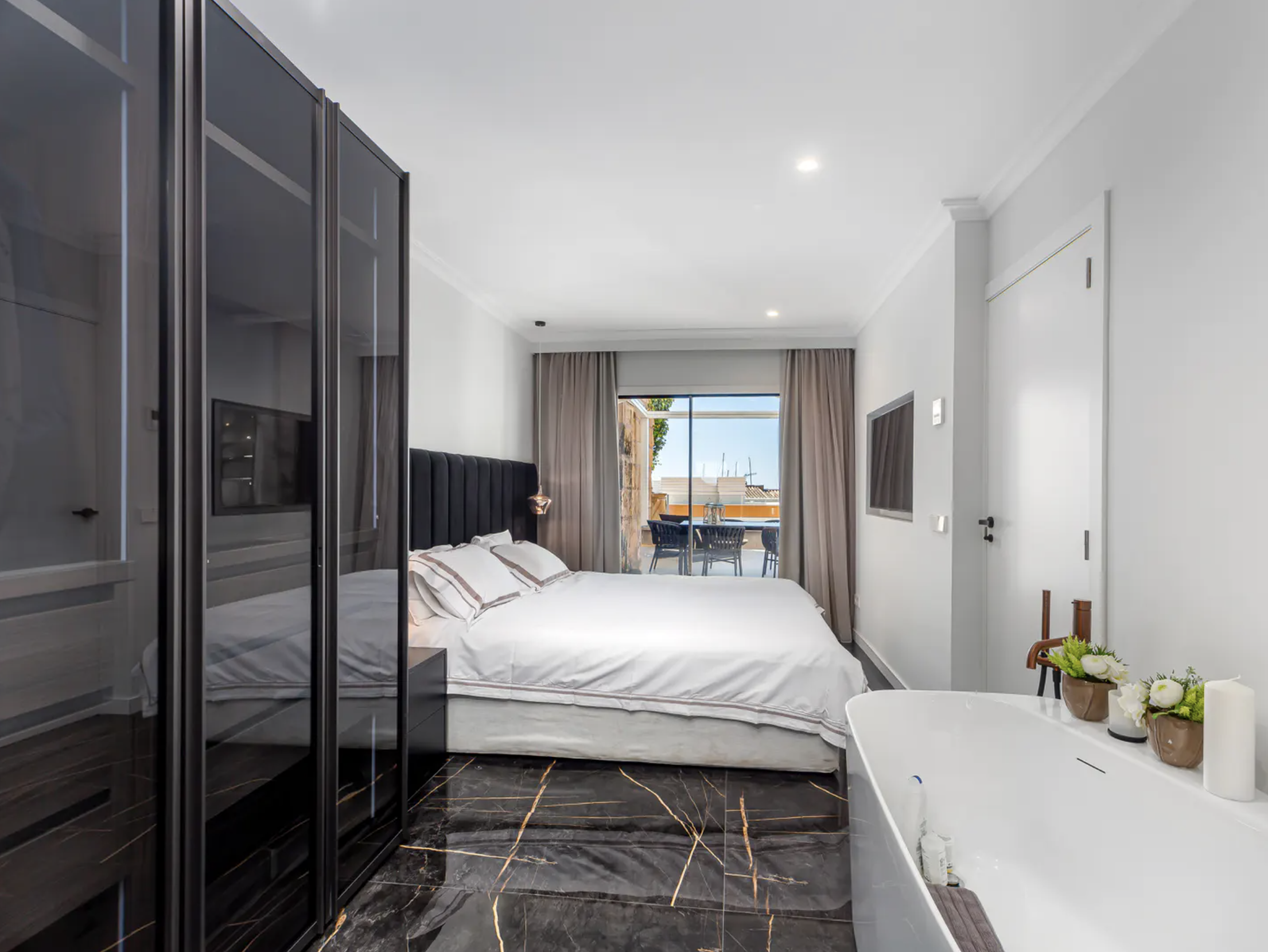 – Południowy taras o powierzchni około 70mkw, dostępny z salonu oraz głównej sypialni, oferuje idealne warunki do relaksu, posiłków na świeżym powietrzu i cieszenia się śródziemnomorskim klimatem.