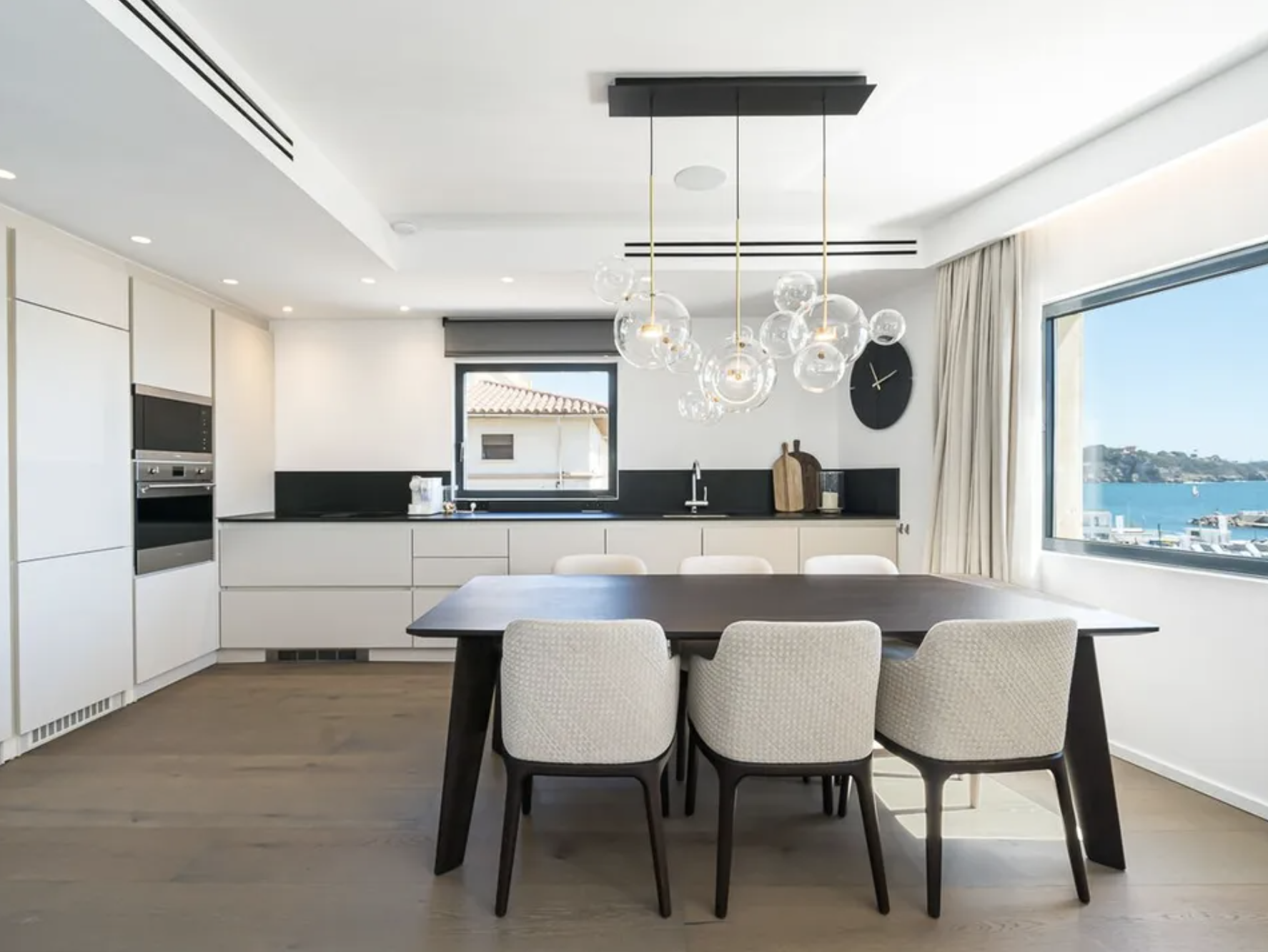 Na sprzedaż wyjątkowy, całkowicie odnowiony penthouse typu duplex, położony w prestiżowej, nadmorskiej dzielnicy San Agustin, jednej z najbardziej pożądanych lokalizacji w stolicy Majorki – Palmie. Nieruchomość usytuowana jest zaledwie kilka kroków od przystani jachtowej Cala Nova, w kultowej dzielnicy „Bristol”, co gwarantuje spektakularne, panoramiczne widoki na morze i port z każdego pomieszczenia. Lokalizacja oferuje łatwy dostęp do wszystkich niezbędnych udogodnień, co czyni to miejsce idealnym zarówno dla rodzin, jak i osób poszukujących komfortu w bezpośrednim sąsiedztwie wybrzeża.