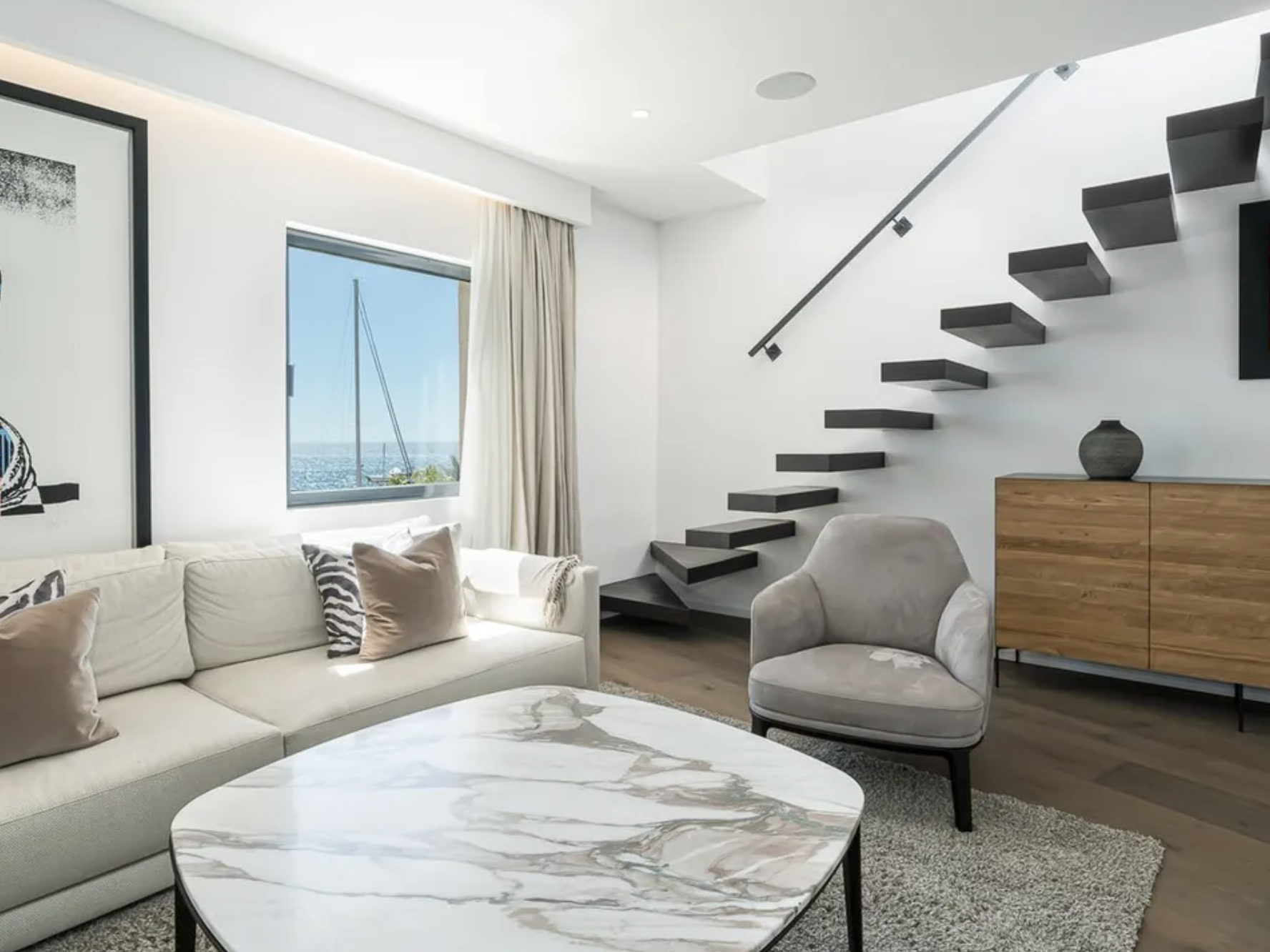 Z salonu prowadzą eleganckie, niewielkie schody na imponujący taras dachowy, gdzie znajduje się letnia kuchnia z grillem i lodówką – idealna przestrzeń do relaksu i spędzania czasu w gronie bliskich, z widokiem na malowniczy port. Dodatkowo, mieszkańcy mają dostęp do części wspólnych budynku, w tym przestronnego tarasu, wspólnego basenu oraz drugiego tarasu na dachu z panoramicznym widokiem na morze. Co istotne, opłaty wspólnotowe obejmują również koszty zużycia ciepłej wody.