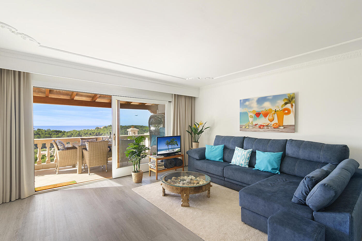 Położenie apartamentu zapewnia także świetną komunikację z całym południowo-zachodnim wybrzeżem Majorki, pełnym urokliwych plaż, prestiżowych marin oraz renomowanych pól golfowych. Dojazd do Palmy i lotniska zajmuje niecałe 25 minut samochodem. W ramach kompleksu mieszkańcy mają do dyspozycji wspólną przestrzeń z pięknie utrzymanym ogrodem, basenem i słonecznym tarasem, a także prywatne miejsca parkingowe.