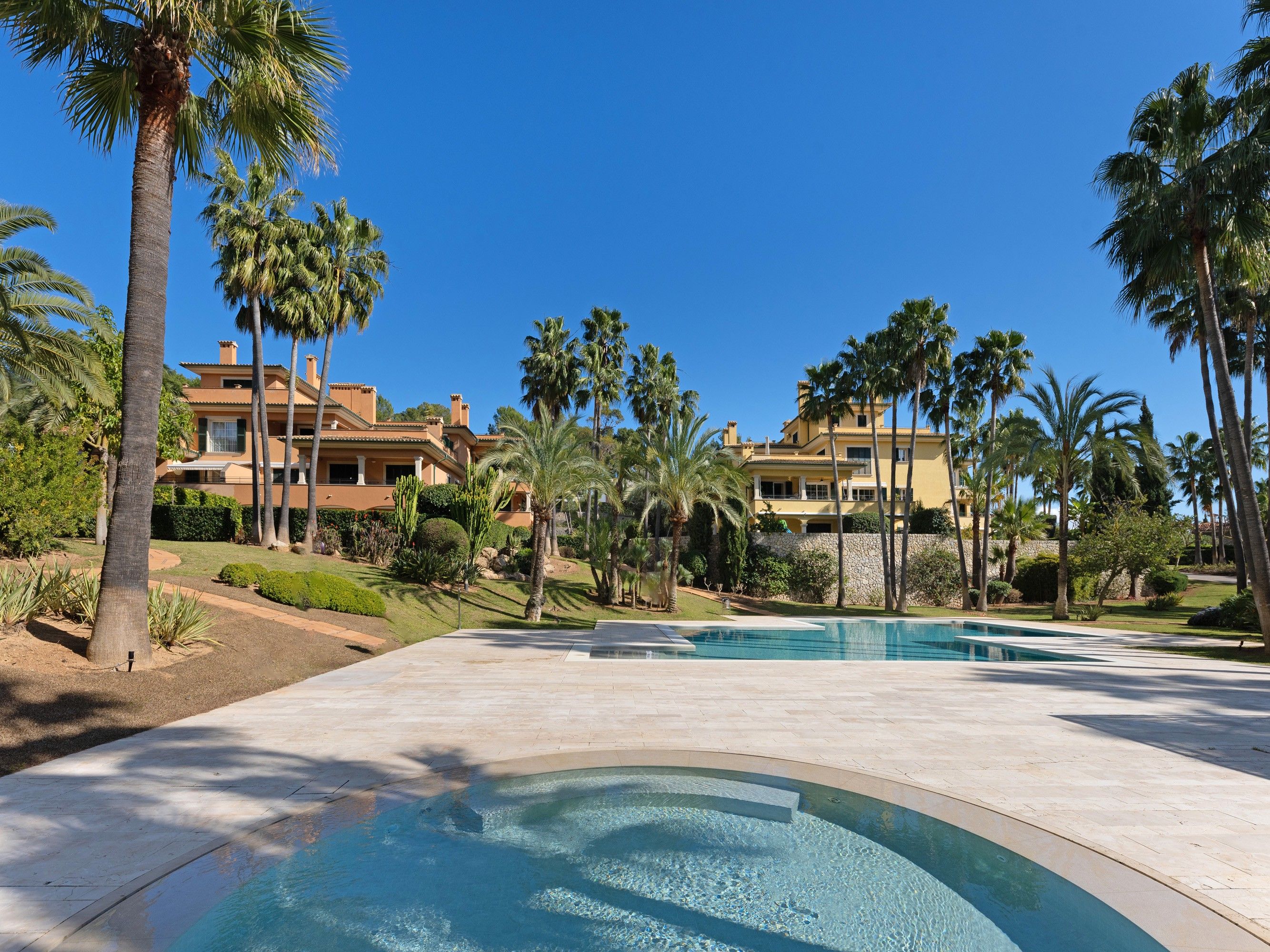 Ten przestronny i elegancki apartament usytuowany jest w prestiżowym kompleksie mieszkaniowym Hoyo 3, zlokalizowanym bezpośrednio przy słynnym polu golfowym Son Vida. To wyjątkowe osiedle oferuje mieszkańcom luksusową przestrzeń wypoczynkową z dużym, niedawno odnowionym basenem, tworząc idealne warunki do relaksu w śródziemnomorskim klimacie.