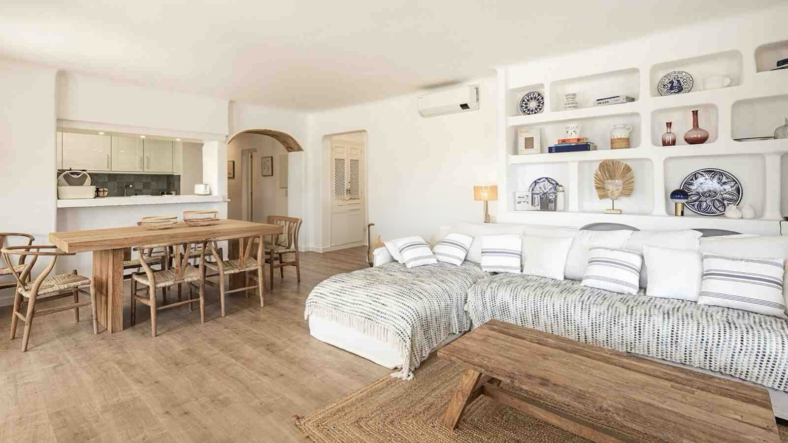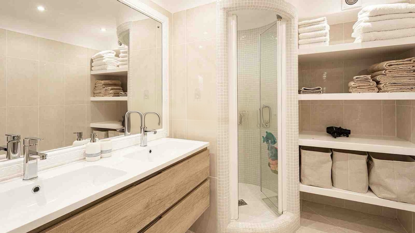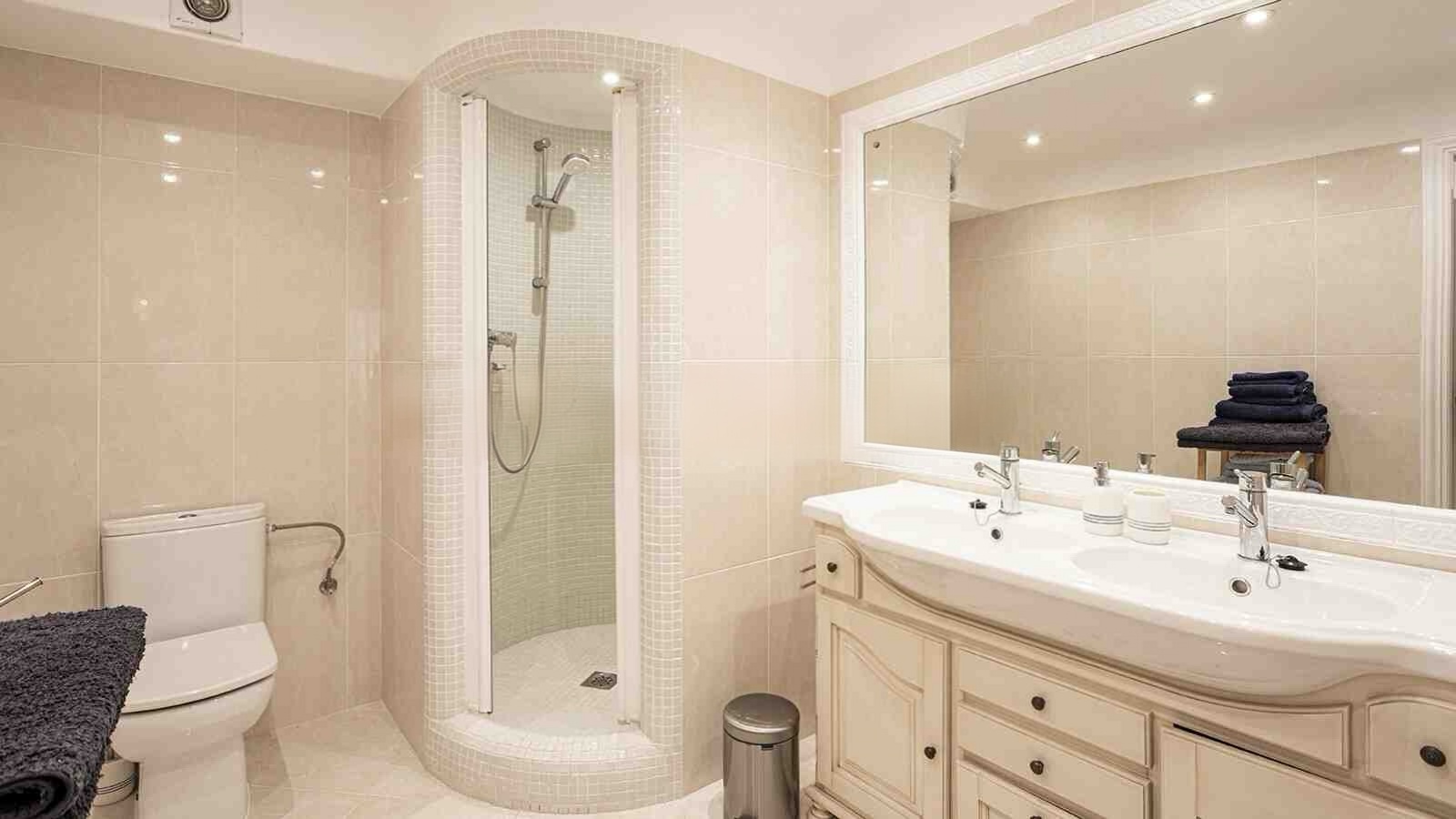 To urocze mieszkanie na parterze znajduje się w prestiżowym kompleksie położonym bezpośrednio przy linii brzegowej, oferując niezakłócony widok na Morze Śródziemne. Nieruchomość została starannie odnowiona i zmodernizowana w 2021 roku, zachowując przy tym śródziemnomorski charakter. Na przestrzeni ok. 150mkw rozplanowano przestronny, jasny salon z częścią jadalnianą, nowoczesną kuchnię, cztery sypialnie oraz dwie łazienki. Dodatkowe pomieszczenia gospodarcze zapewniają praktyczną przestrzeń do przechowywania.