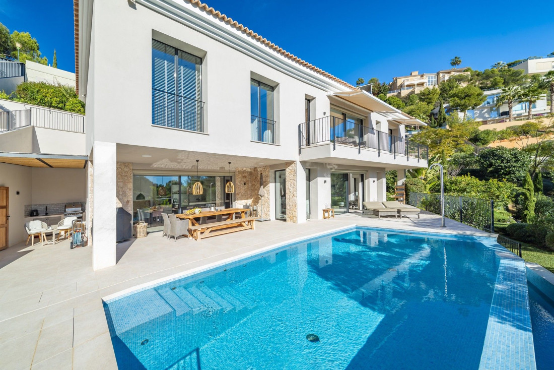 Willa położona jest w spokojnej, prestiżowej dzielnicy mieszkalnej El Toro, w pożądanej południowo-zachodniej części Majorki. To idealna lokalizacja dla osób poszukujących harmonii między relaksem, a wygodą, zaledwie kilka minut spacerem dzieli ją od urokliwego centrum El Toro, luksusowej mariny Port Adriano oraz pobliskiej, piaszczystej plaży. Port Adriano, zaprojektowany przez światowej sławy architekta Philippe’a Starcka, oferuje wyjątkową atmosferę dzięki ekskluzywnej strefie handlowej, znakomitym restauracjom – takim jak „Coast” czy „Sansibar” oraz bogatej ofercie rozrywkowej. W bliskiej odległości znajdują się również renomowane pola golfowe Santa Ponsa, a dojazd do centrum Palmy czy międzynarodowej szkoły zajmuje około 15 minut. Miejscowość oferuje także pełną infrastrukturę – sklepy, banki, placówki medyczne, restauracje i kawiarnie – zapewniając wszystko, co potrzebne do codziennego życia.