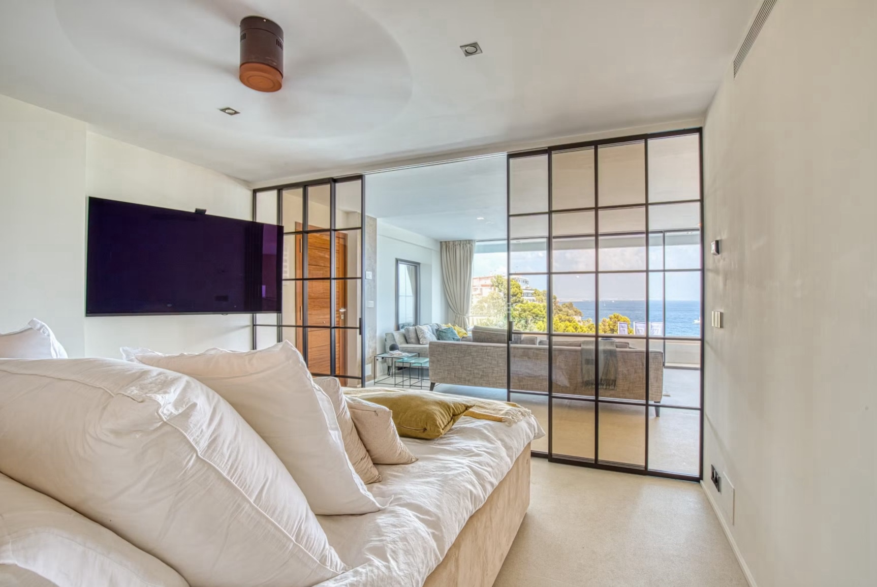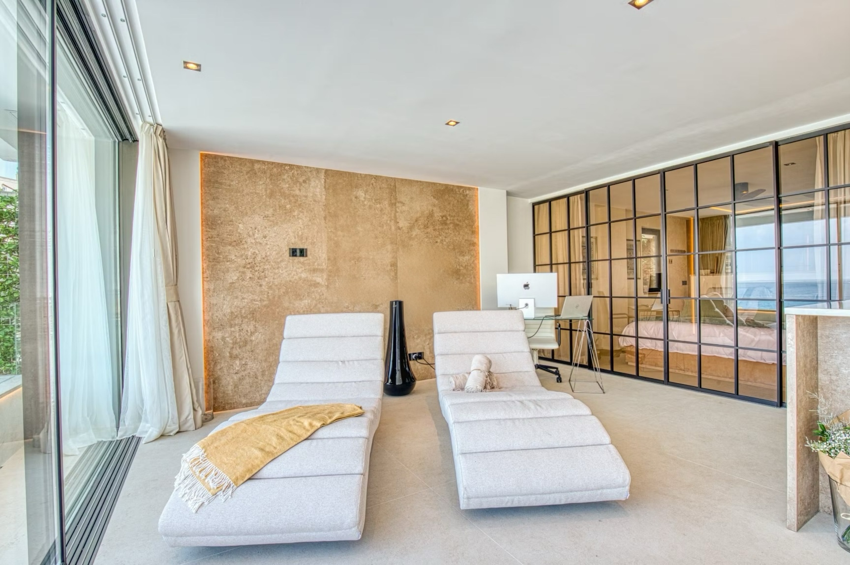 Wnętrze oferuje doskonały układ funkcjonalny, który płynnie łączy część mieszkalną z przestrzenią wypoczynkową i rozrywkową. Apartament składa się z dwóch przestronnych sypialni, trzech eleganckich łazienek, toalety dla gości, designerskiej kuchni otwartej na salon z jadalnią, funkcjonalnej pralni oraz dużego tarasu z zapierającym dech w piersiach widokiem na morze. Dodatkowym atutem jest nowoczesne kino domowe, które z łatwością może zostać przekształcone w trzecią sypialnię – w zależności od potrzeb właściciela.