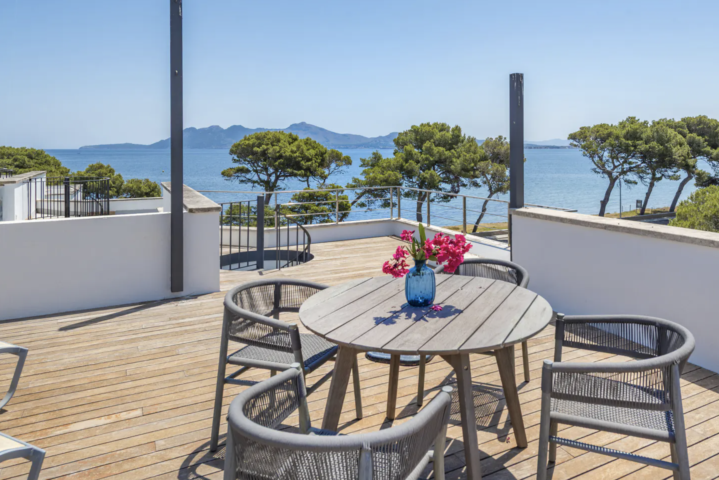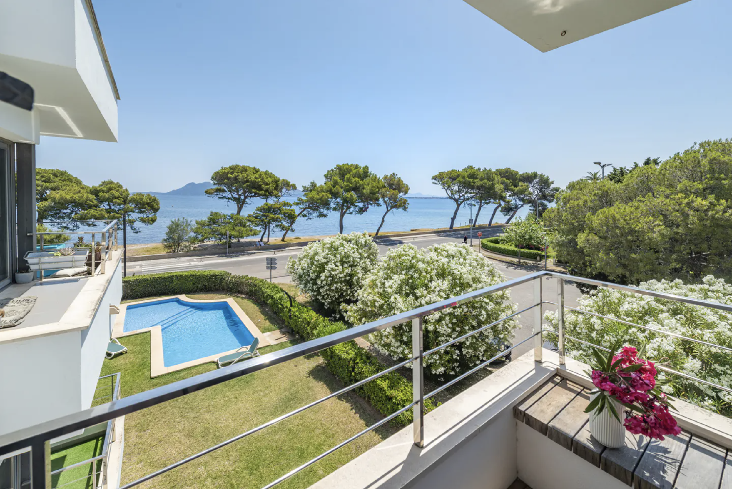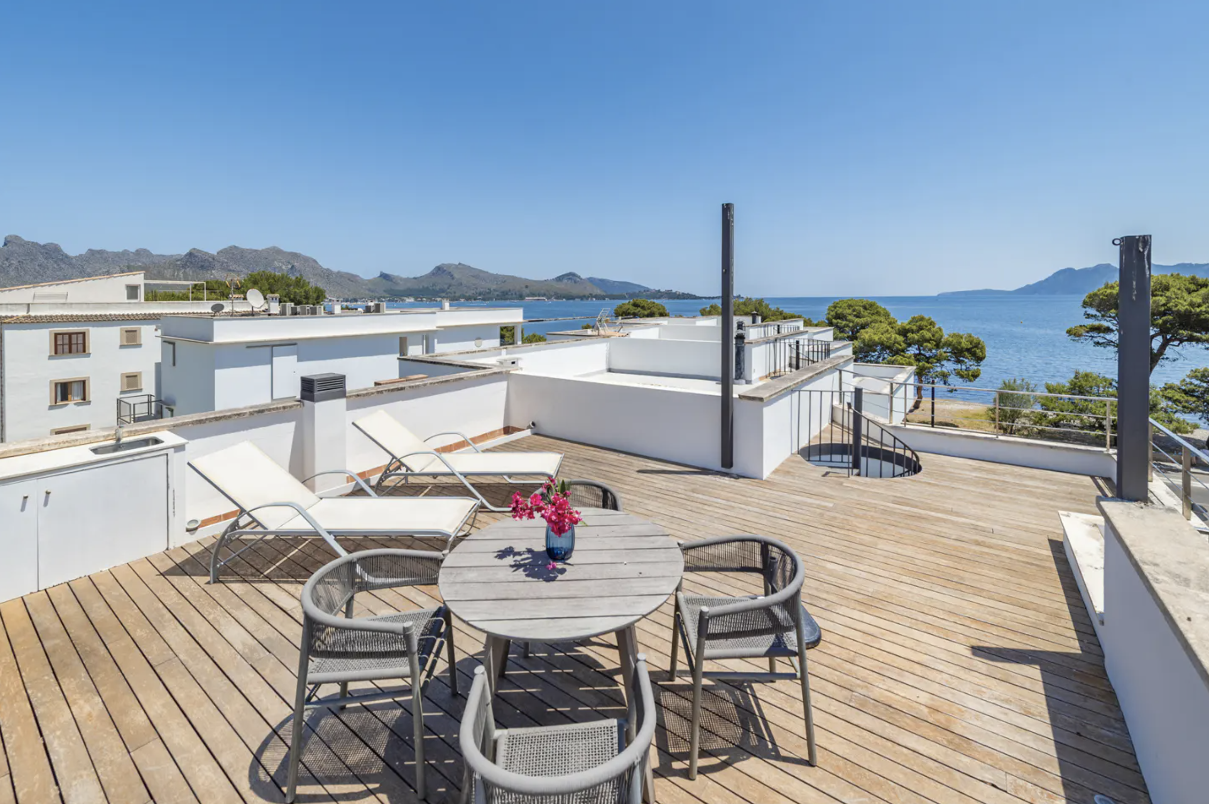 Ten wyjątkowy penthouse położony jest w absolutnie doskonałej lokalizacji – tuż nad samym brzegiem morza w Puerto Pollensa. Apartament znajduje się na drugim piętrze eleganckiego budynku i zapewnia mieszkańcom dostęp do zadbanego, wspólnego ogrodu z basenem oraz oszałamiającym widokiem na morze. To idealne miejsce dla osób poszukujących wysokiego komfortu życia w prestiżowym otoczeniu.