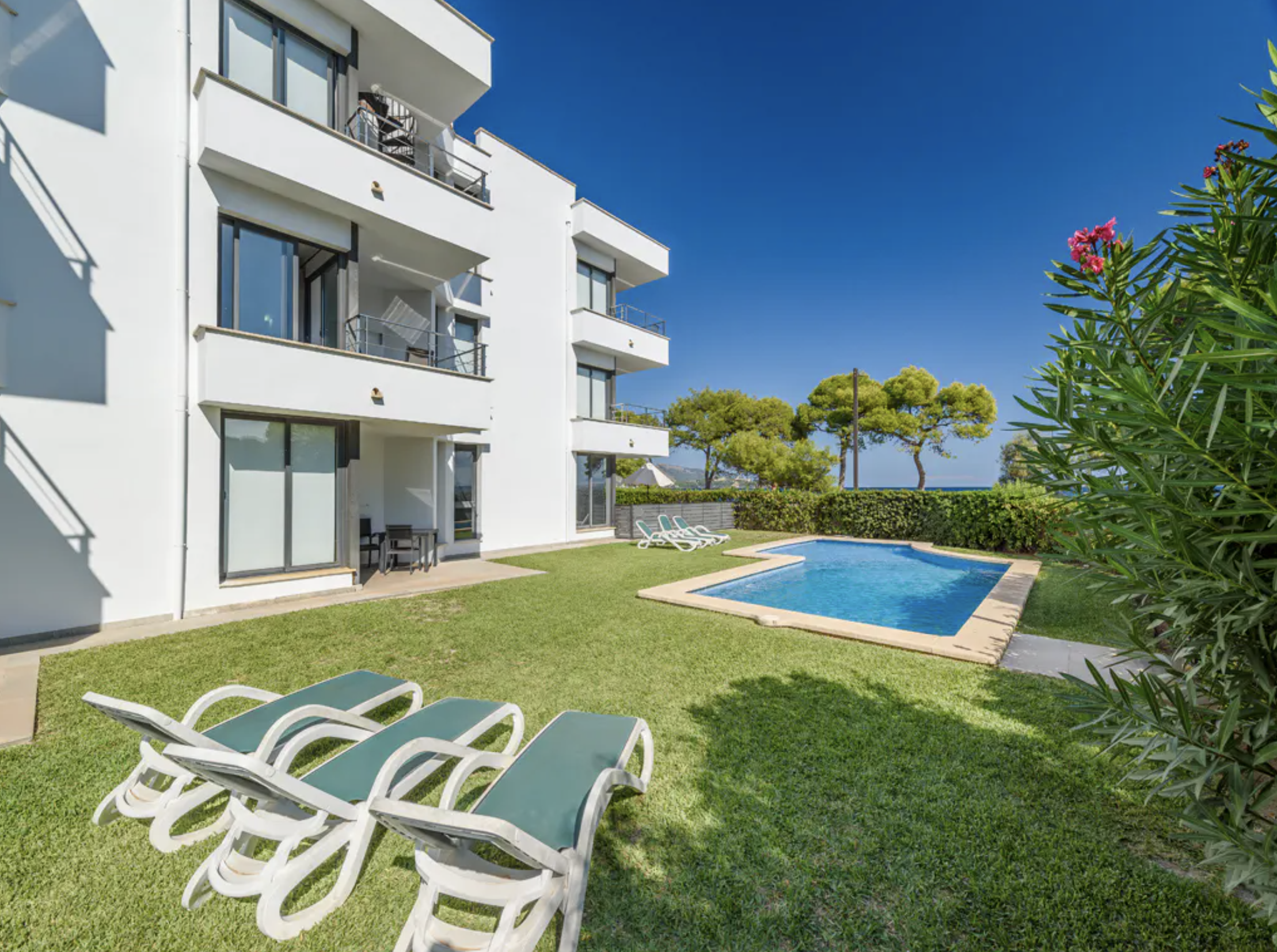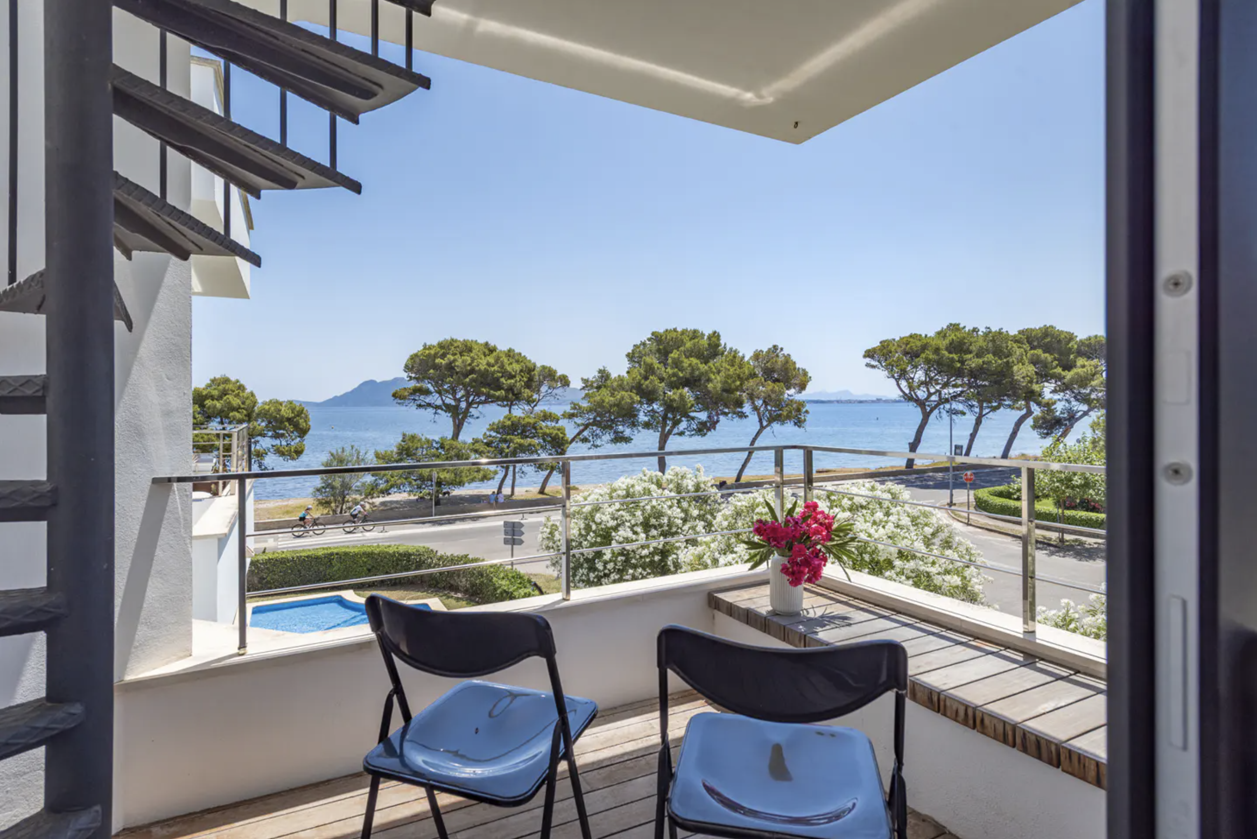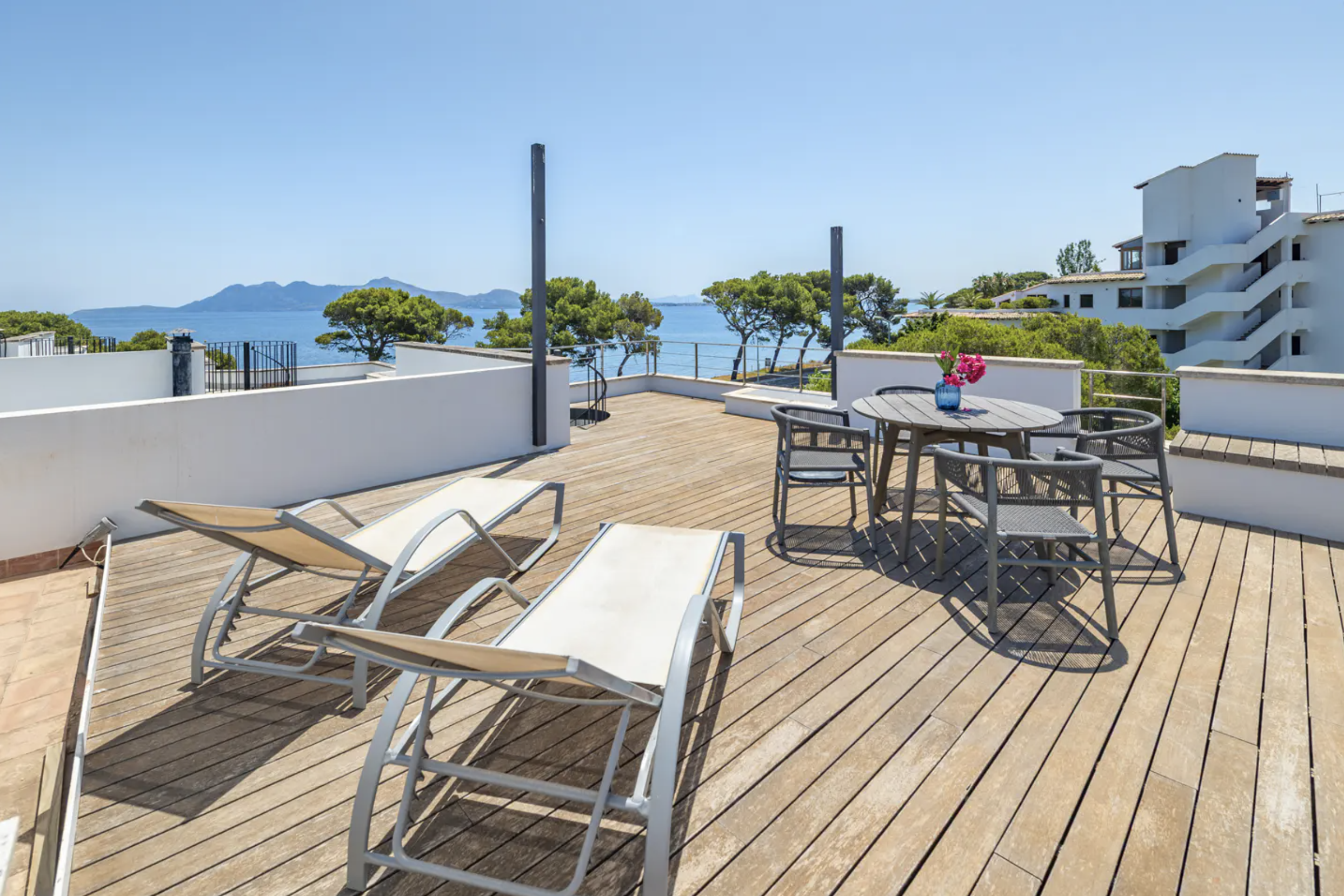 Ten wyjątkowy penthouse położony jest w absolutnie doskonałej lokalizacji – tuż nad samym brzegiem morza w Puerto Pollensa. Apartament znajduje się na drugim piętrze eleganckiego budynku i zapewnia mieszkańcom dostęp do zadbanego, wspólnego ogrodu z basenem oraz oszałamiającym widokiem na morze. To idealne miejsce dla osób poszukujących wysokiego komfortu życia w prestiżowym otoczeniu.