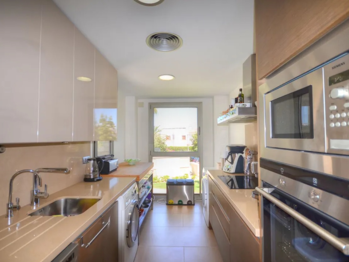 Wśród udogodnień kompleksu znajdują się trzy przestronne baseny otoczone słonecznymi tarasami, centrum wellness z sauną, łaźnią parową i siłownią. Do apartamentu przynależy miejsce parkingowe w podziemnym garażu oraz opcjonalnie drugie miejsce na zewnątrz. Mieszkanie wyposażone jest w klimatyzację z funkcją grzania i chłodzenia, wideodomofon, aluminiowe okna z podwójnymi szybami oraz dostęp do wszystkich mediów (prąd i woda z sieci).