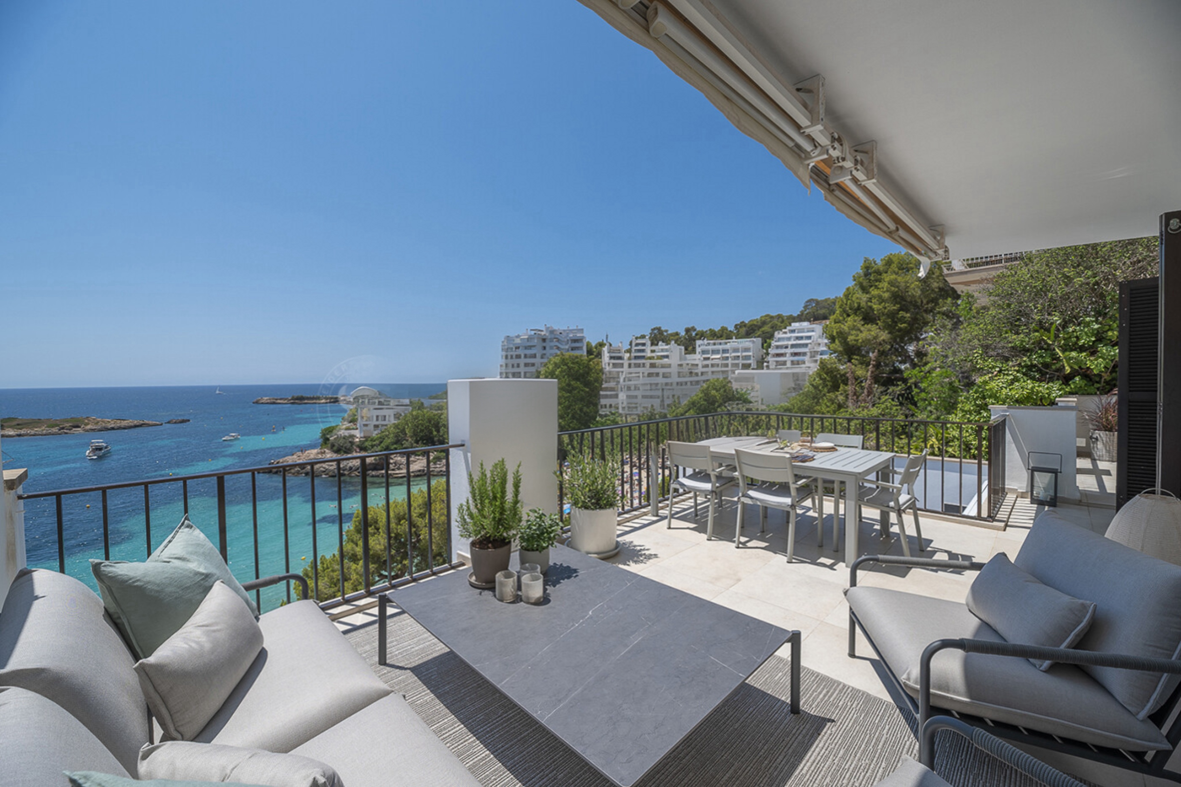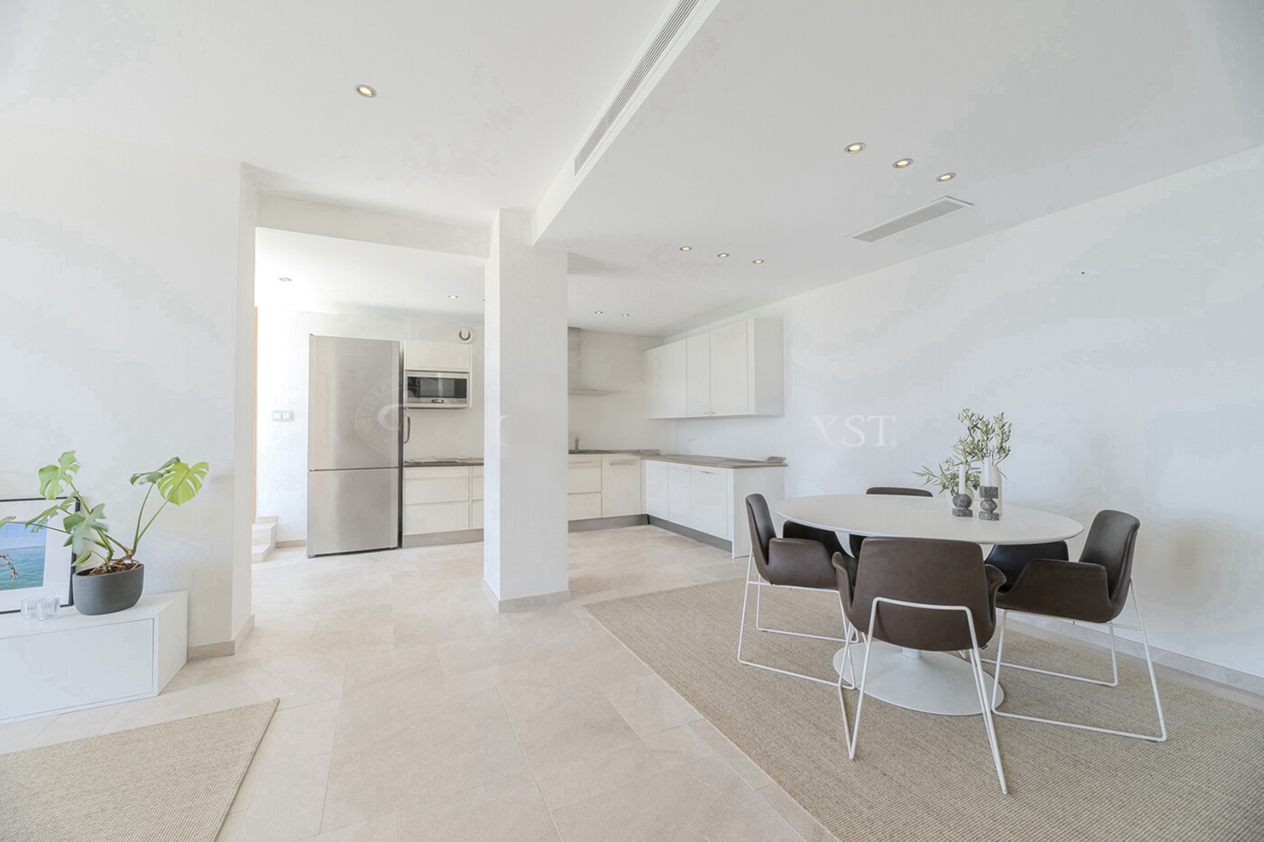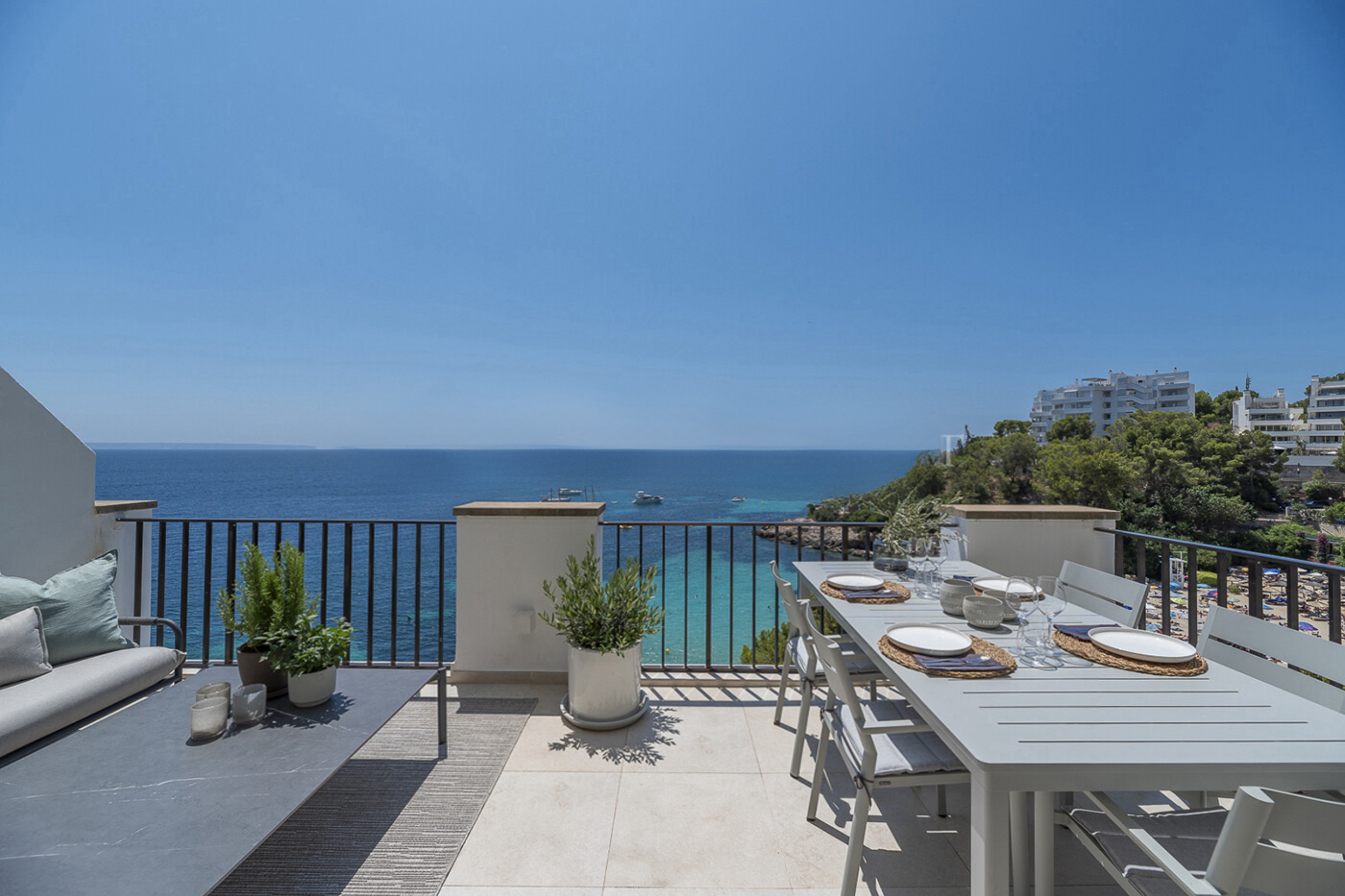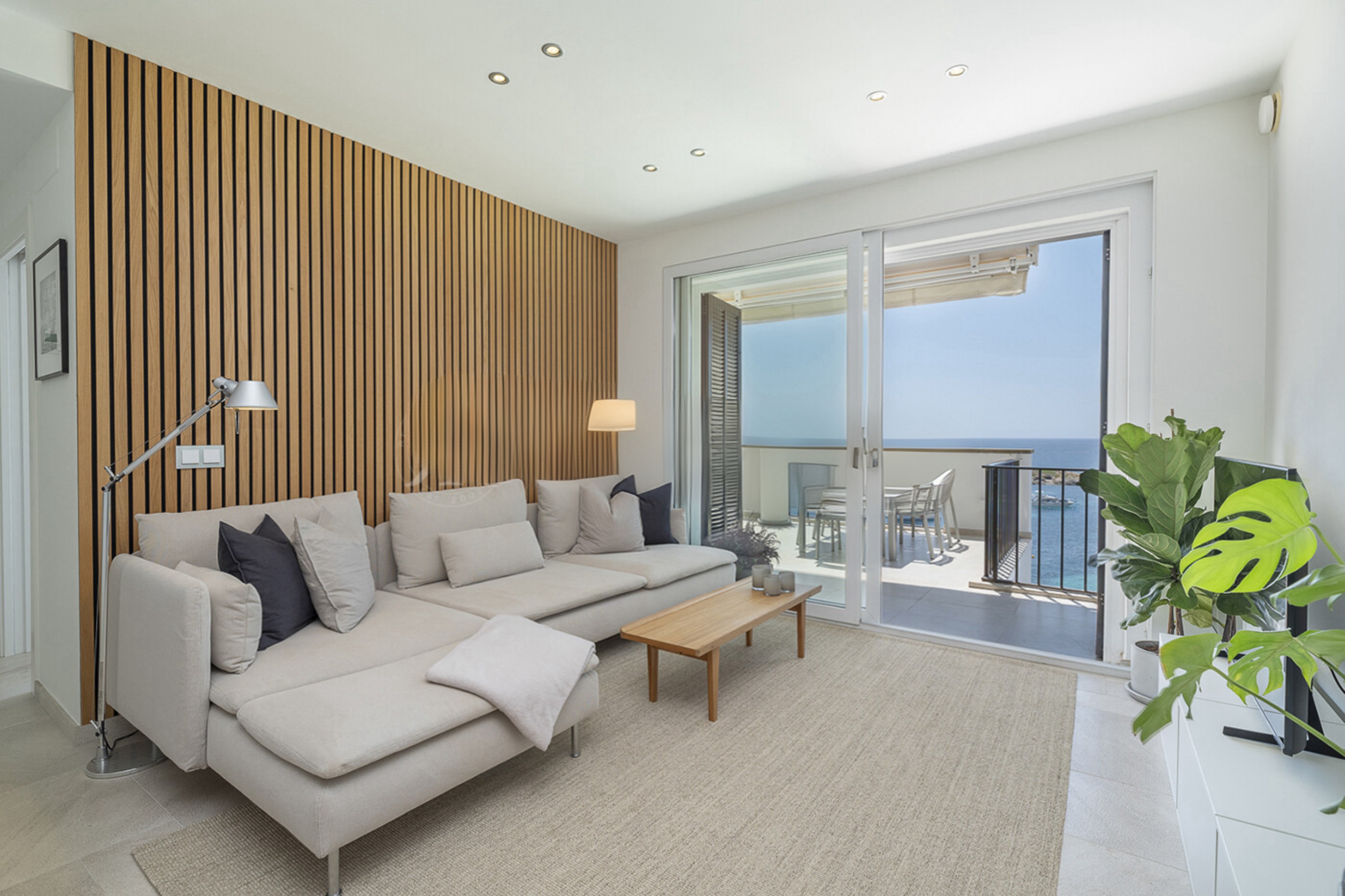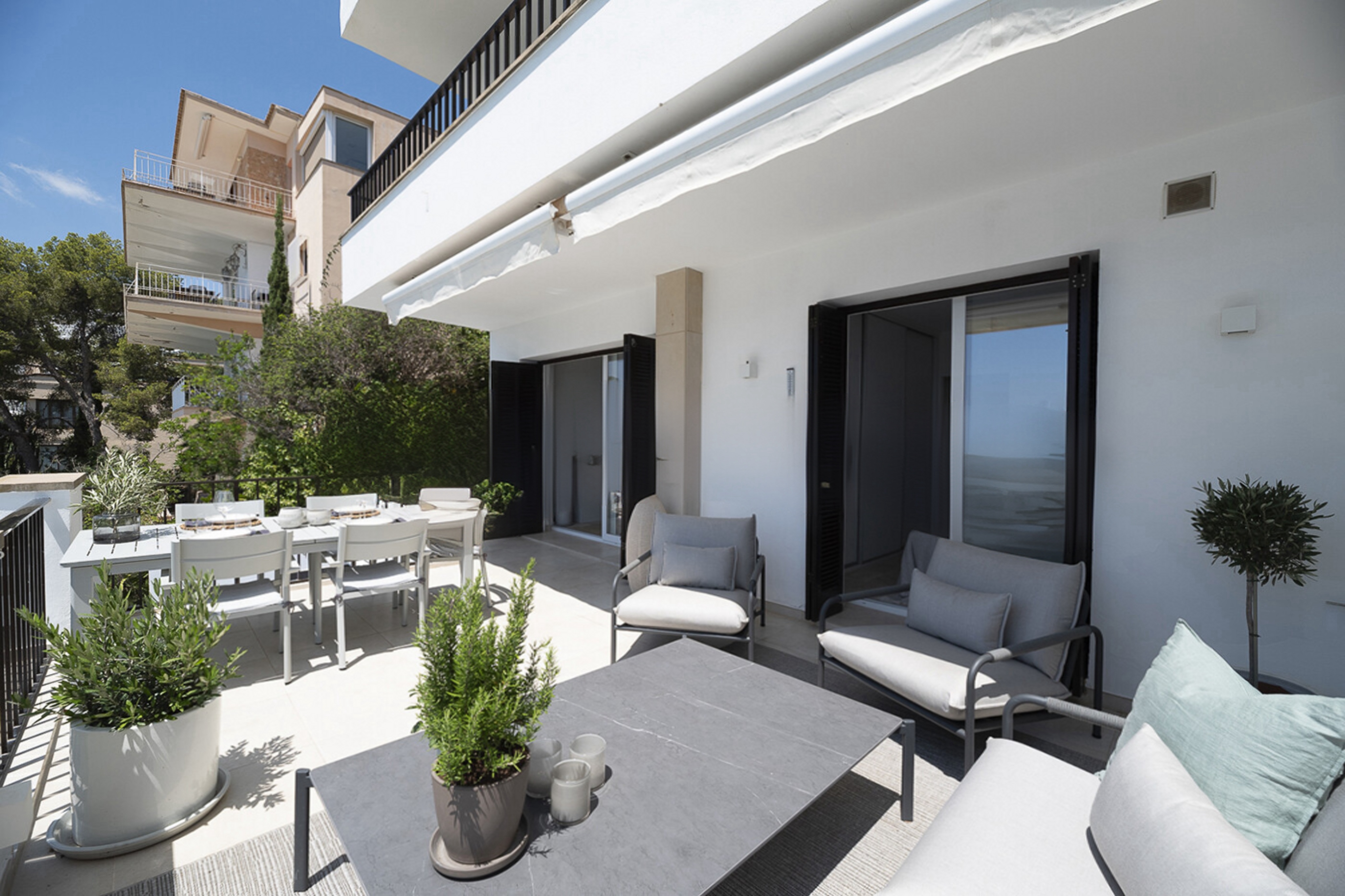 Apartament położony jest w pierwszej linii zabudowy w Illetas, w spokojnej okolicy, w zadbanym budynku, z którego windą można dostać się na plażę i do klubu plażowego Puro. Zadaszony parking w pobliżu można dokupić osobno.