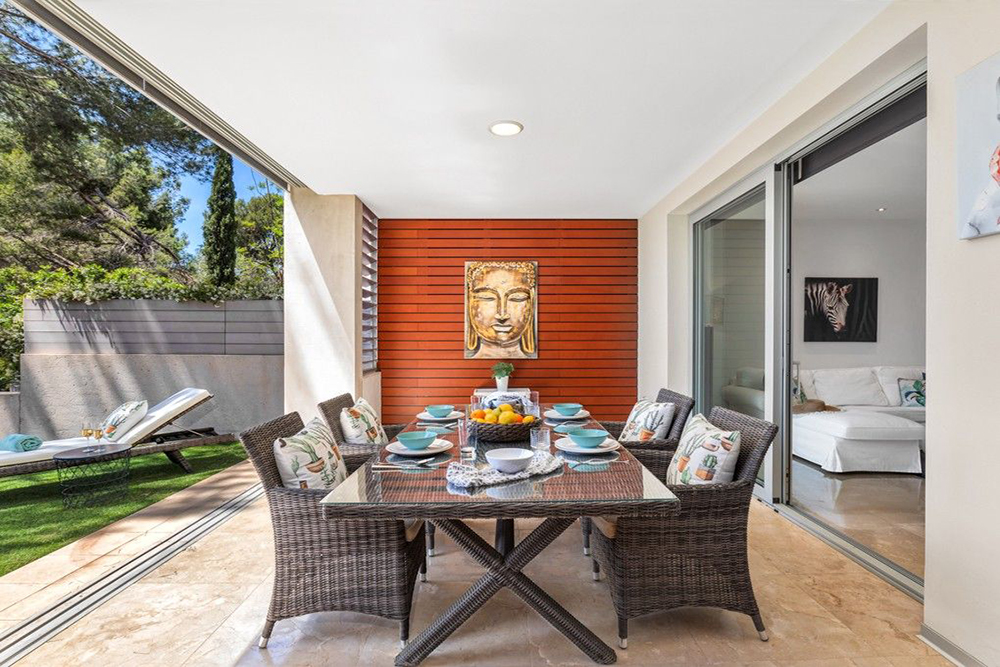 Luksusowy apartament, z panoramicznym widokiem na morze ulokowany jest w drugiej linii brzegowej w Cala Mayor, jednej z najbardziej ekskluzywnych i pożądanych lokalizacji na południowo-zachodnim wybrzeżu Majorki. W zasięgu spaceru znajdują się plaże, kawiarnie, restauracje i butiki. Jednocześnie lokalizacja oferuje spokój i prywatność, co czyni ją idealnym miejscem na relaks.