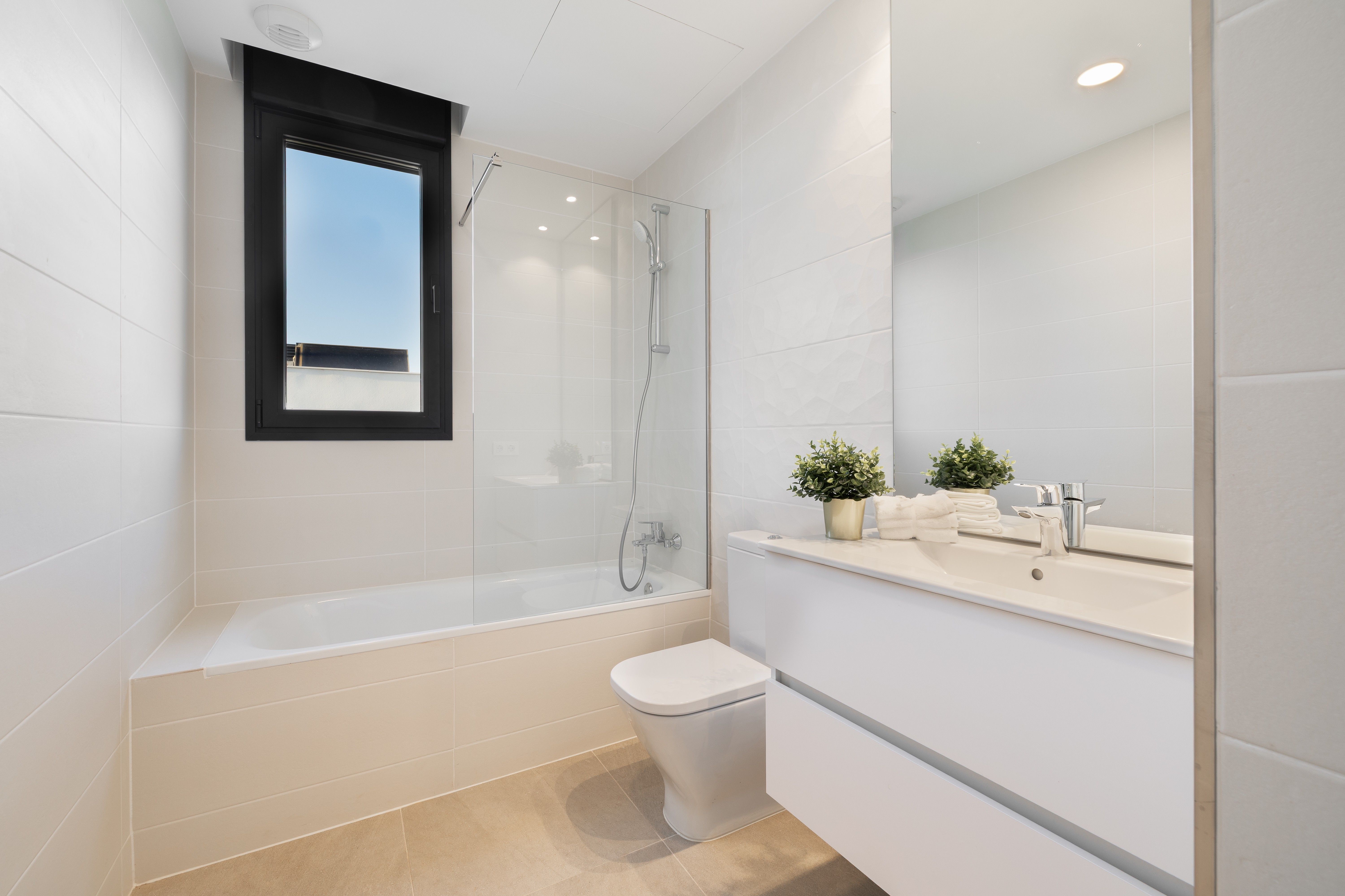 Kuchnia jest częściowo wyposażona w sprzęt AGD marki Siemens klasy A++, co zapewnia wysoką wydajność i energooszczędność. Kompaktowy blat kwarcowy i baterie Grohe w łazienkach, a także ceramika sanitarna Roca, zapewniają elegancję i funkcjonalność.