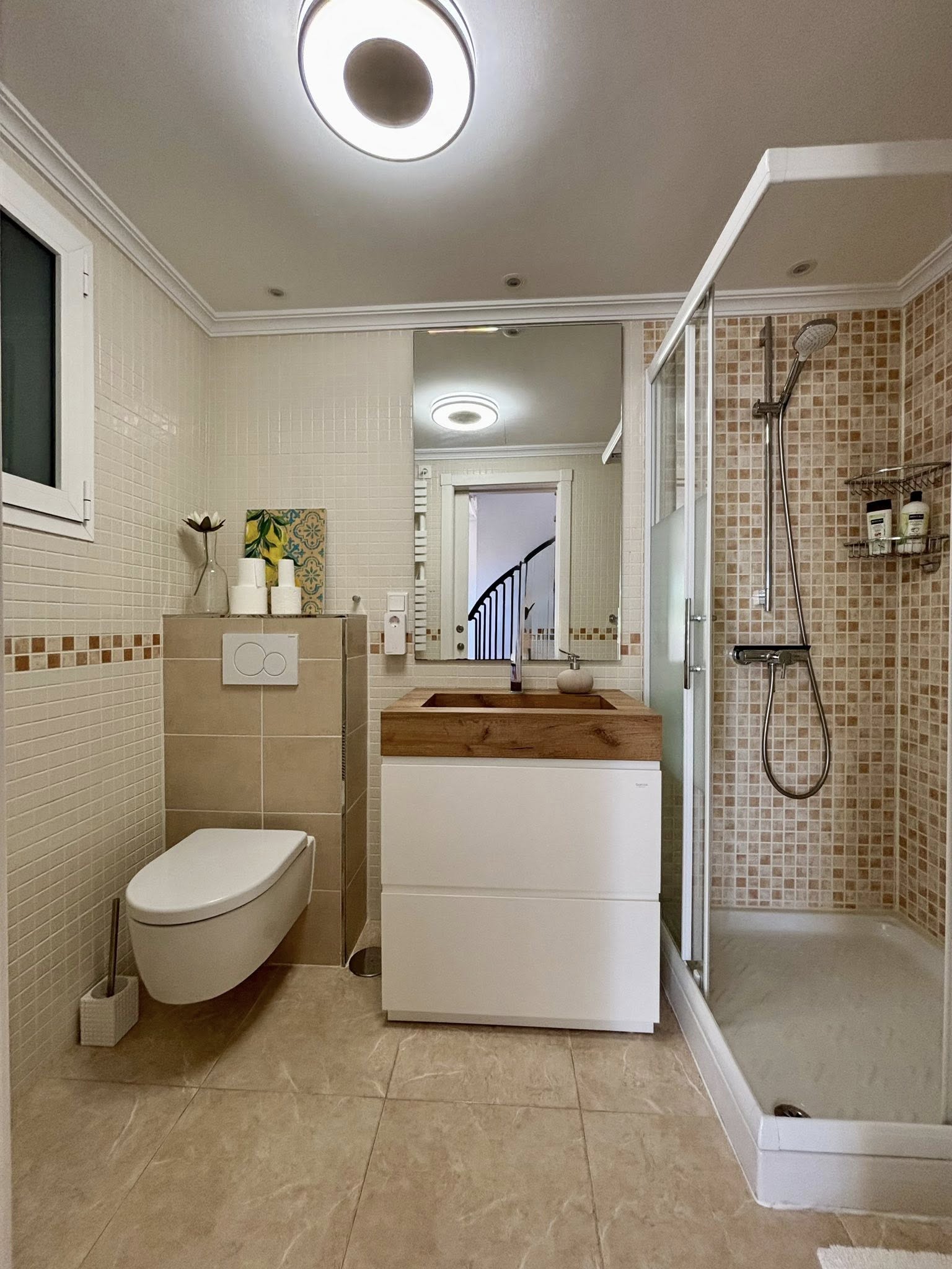 W mieszkaniu są dwie łazienki i dwie sypialnie. Duże wbudowane szafy w obu sypialniach zapewniają mnóstwo miejsca do przechowywania. Piękny 60metrowy taras oferuje prywatne miejsce do odpoczynku i boczny widok na morze. Na terenie posesji znajduje się również prywatne miejsce parkingowe.