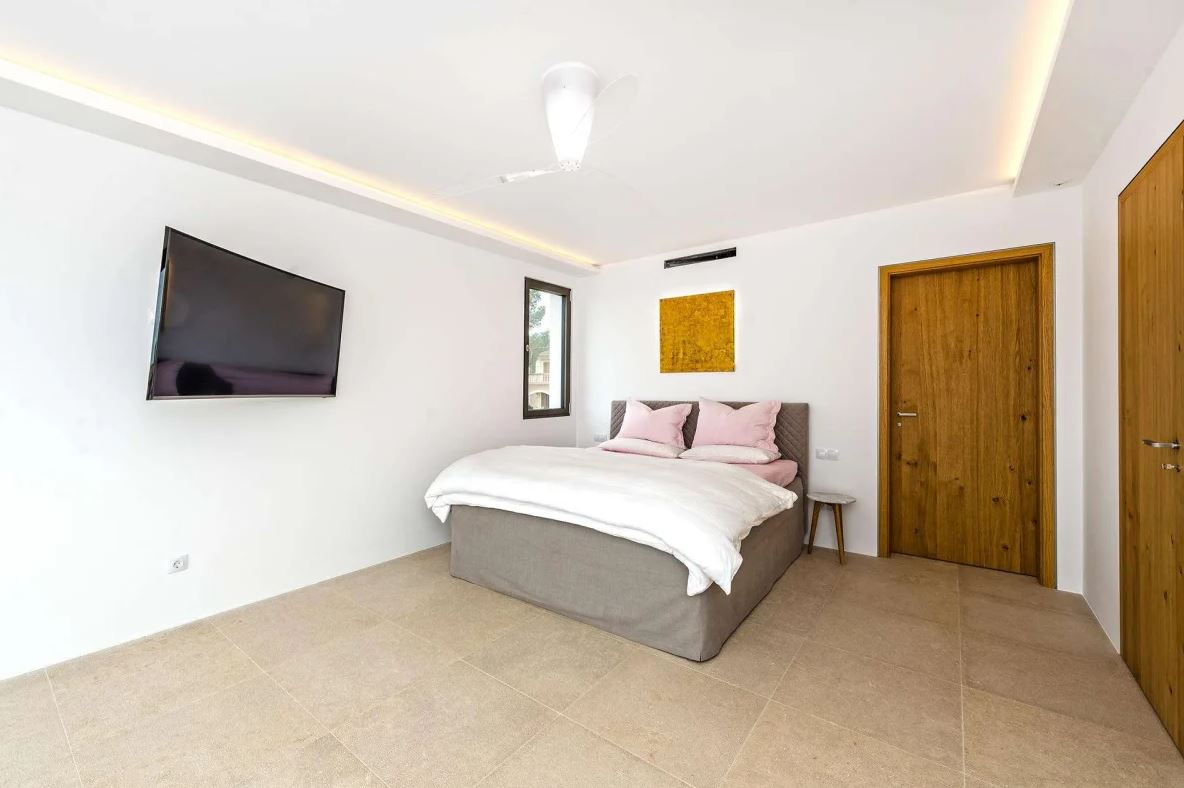 Kompaktowa, nowoczesna i designerska willa z prywatnym ogrodem i podgrzewanym basenem wykończona jest materiałami wysokiej jakości. Powierzchnia mieszkalna to ok 165 m² oferuje trzy duże sypialnie, trzy łazienki, w tym dwie en-suite, garderobę oraz przestronny salon z jadalnią i otwartą kuchnią. Wokół domu roztacza się ogród z basenem, do którego dostęp zapewniają duże, przesuwne okna sięgające od podłogi do sufitu. Największą zaletą nieruchomości jest taras na dachu o powierzchni ok. 90 m², gdzie można cieszyć się słońcem przez cały dzień.