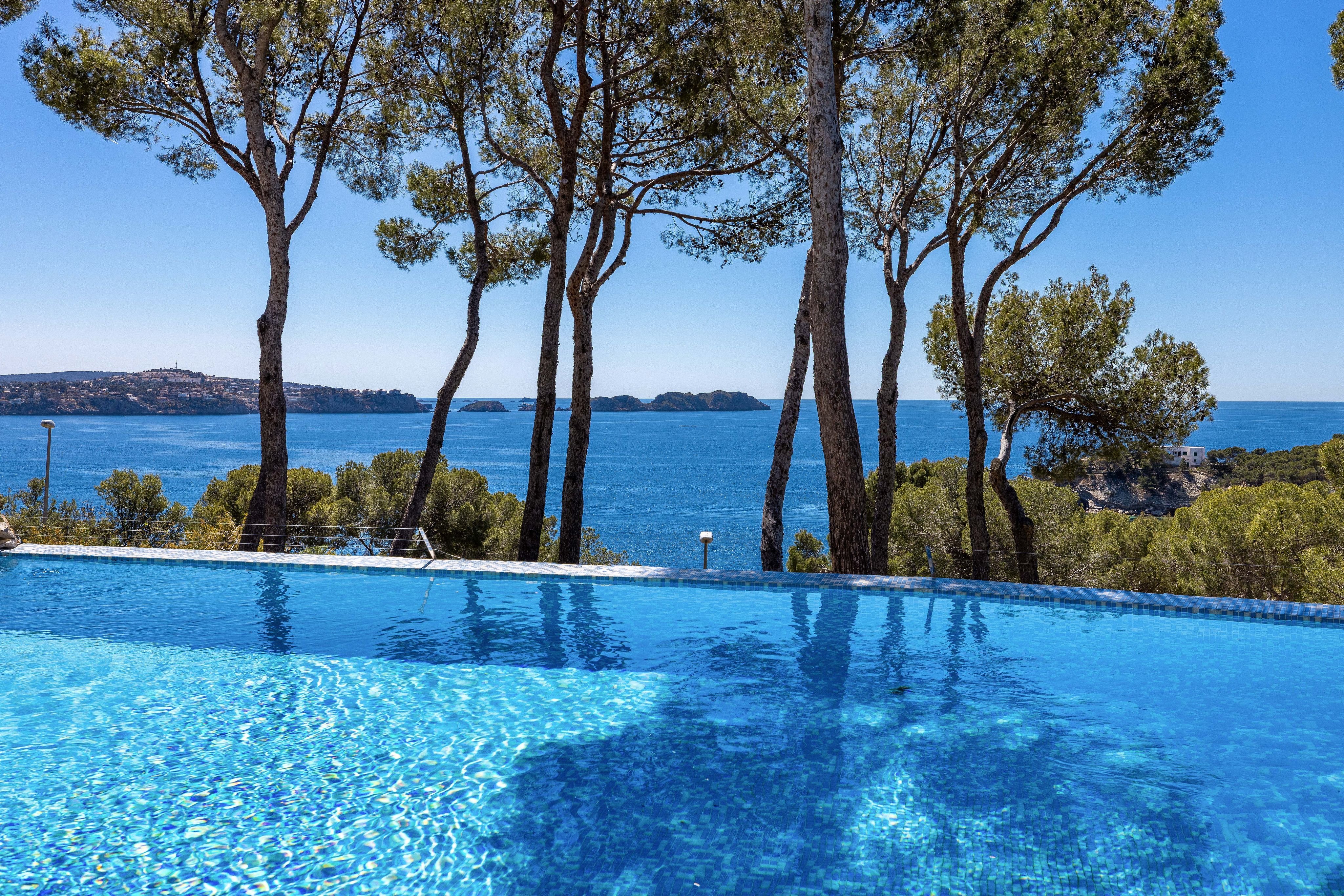 Położony na wzniesieniu i w wyjątkowo cichej okolicy w Cala Fornells, ten jasny penthouse znajduje się w zadbanym kompleksie mieszkaniowym Las Olas III – wyjątkowej nieruchomości wyróżniającej się idealną orientacją południową, zapierającymi dech w piersiach widokami na morze i wysokim stopniem prywatności. Ten wyjątkowy zakątek Majorki słynie z przepięknych widoków na morze, romantycznych zatoczek kąpielowych oraz śródziemnomorskiego klimatu. Cala Fornells, położona powyżej popularnej Paguery, cieszy się szczególnym uznaniem wśród turystów, którzy chętnie wybierają to miejsce na weekendowe wypady lub dłuższy wypoczynek. W okolicy znajdują się liczne sklepy, restauracje i bary, do których można dotrzeć zarówno schodami, jak i drogą dojazdową. Dzięki dogodnej lokalizacji do stolicy wyspy – Palmy – można dotrzeć w około 20 minut jazdy samochodem, a podróż na lotnisko zajmuje jedynie pół godziny.